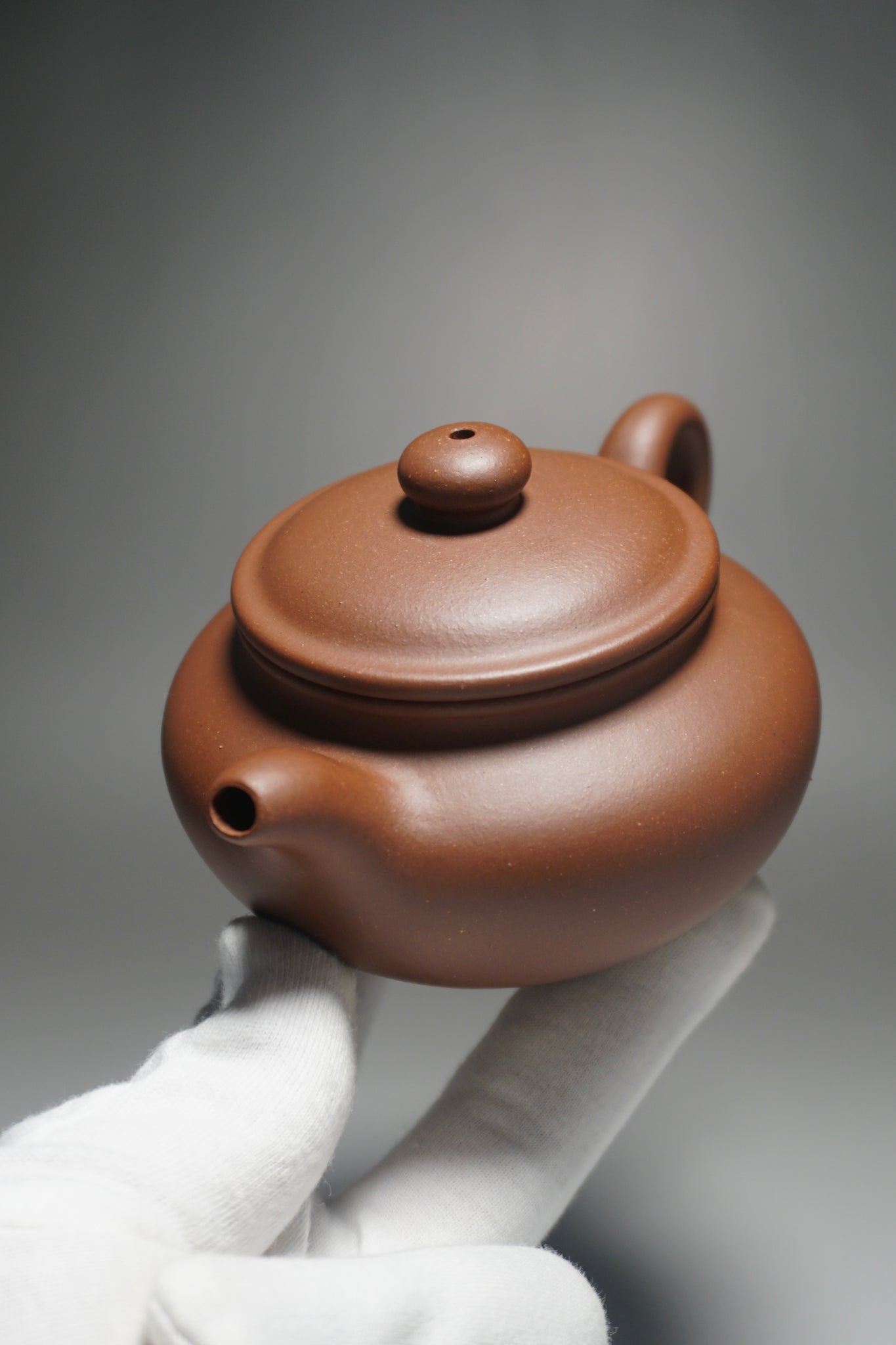This teapot was made of original ore lao zini (old purple clay) mined from Huanglongshan in Yixing. It has been aged for over 9 years. This clay is very versatile and is good for use with most kinds of tea. Click here for more information on zini and tea pairing with Yixing Teapots.