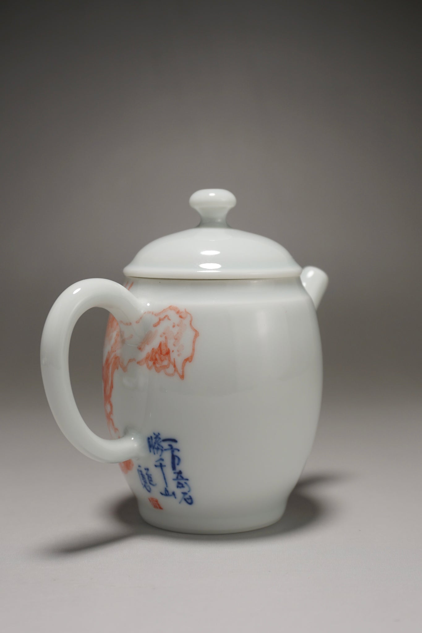 The qinghua (blue) painting was done by the artist KuangShi 匡石, a master of qinghua porcelain painting in Jingdezhen.