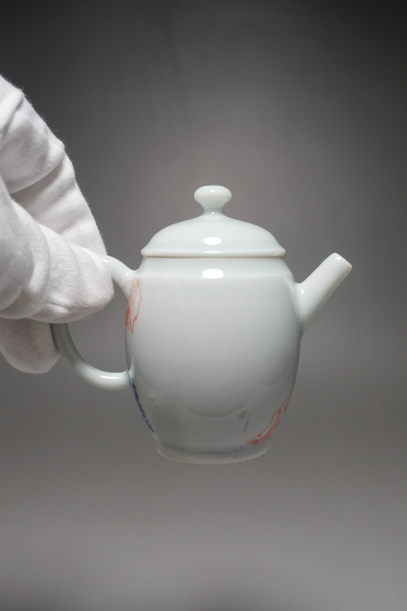 This teapot is handmade of fine porcelain and hand painted. Photos are of actual teapot. Only 1 available.