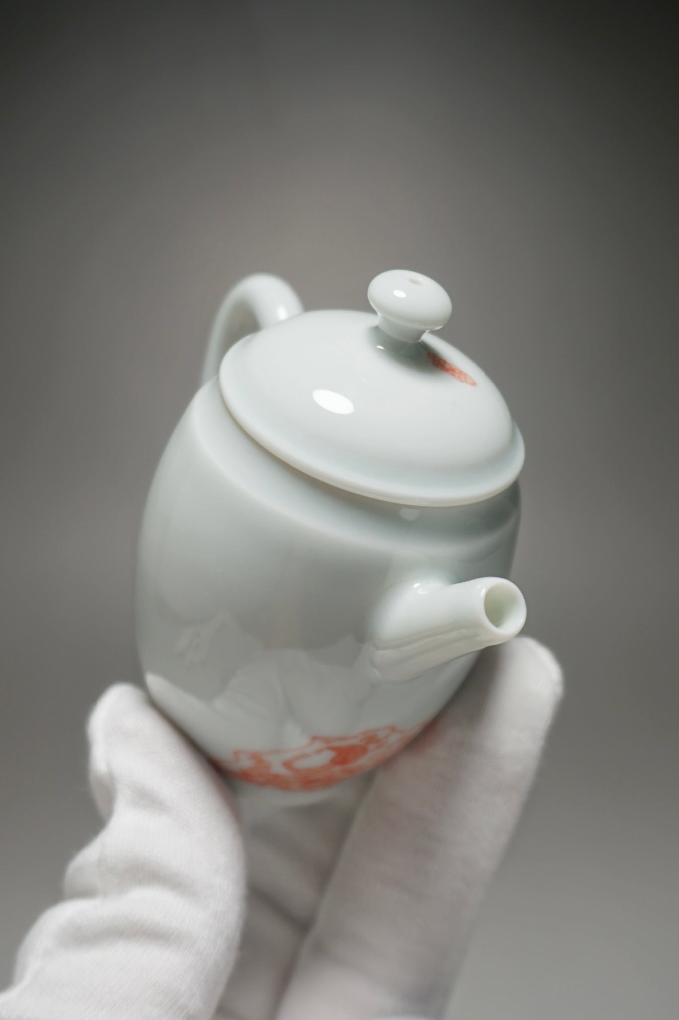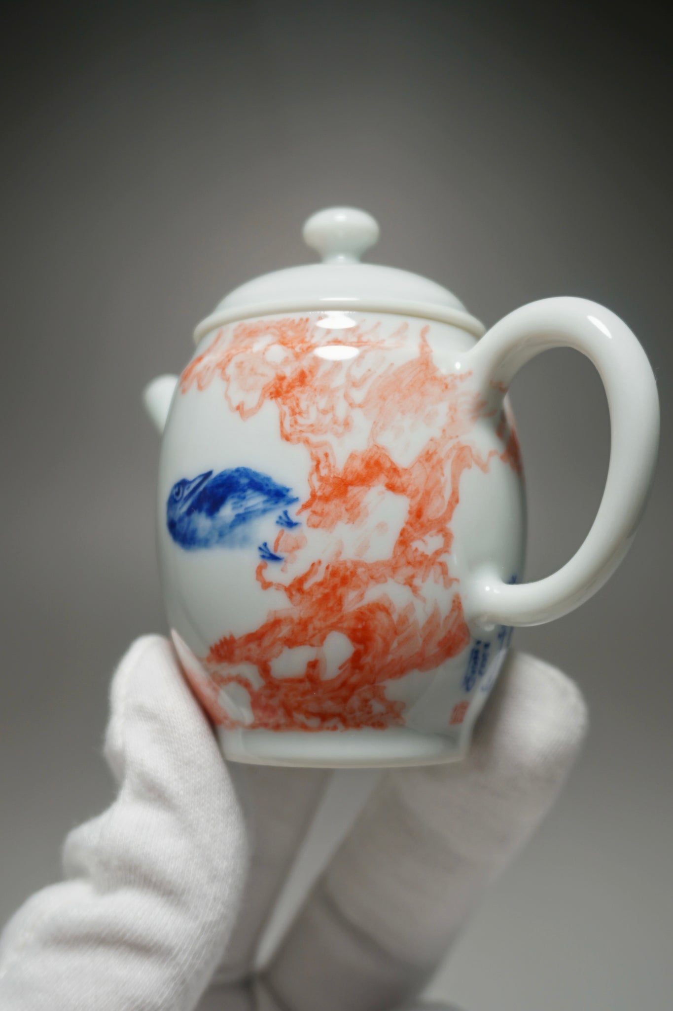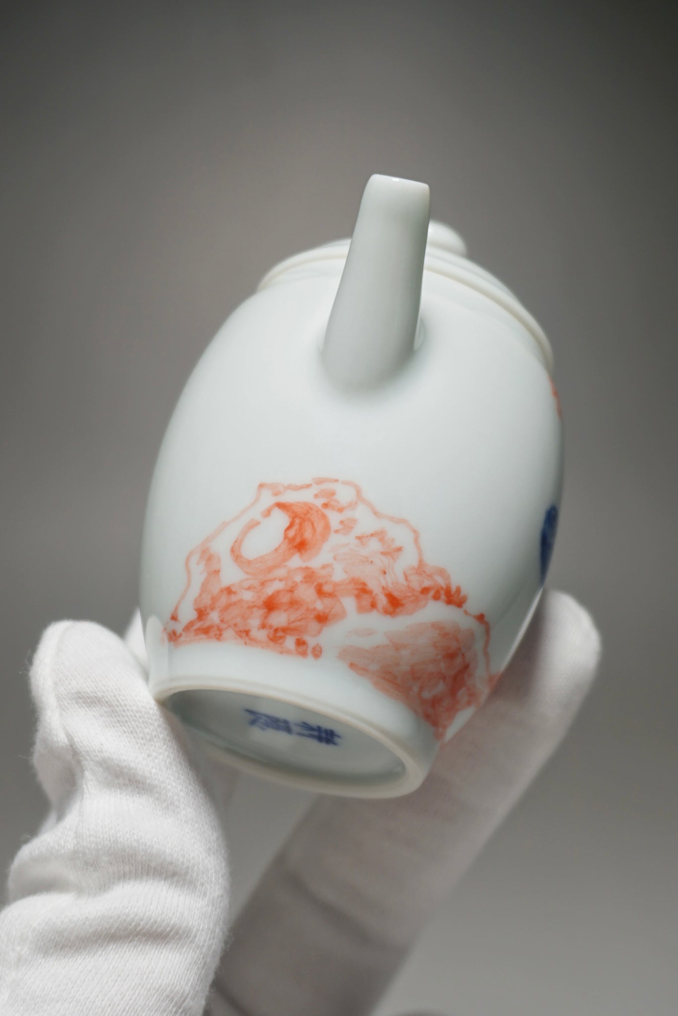 Qinghua Bird Jingdezhen Fine Porcelain Teapot by Master KuangShi 青花匡石手绘高士壶-乌鸦奇石 85ml