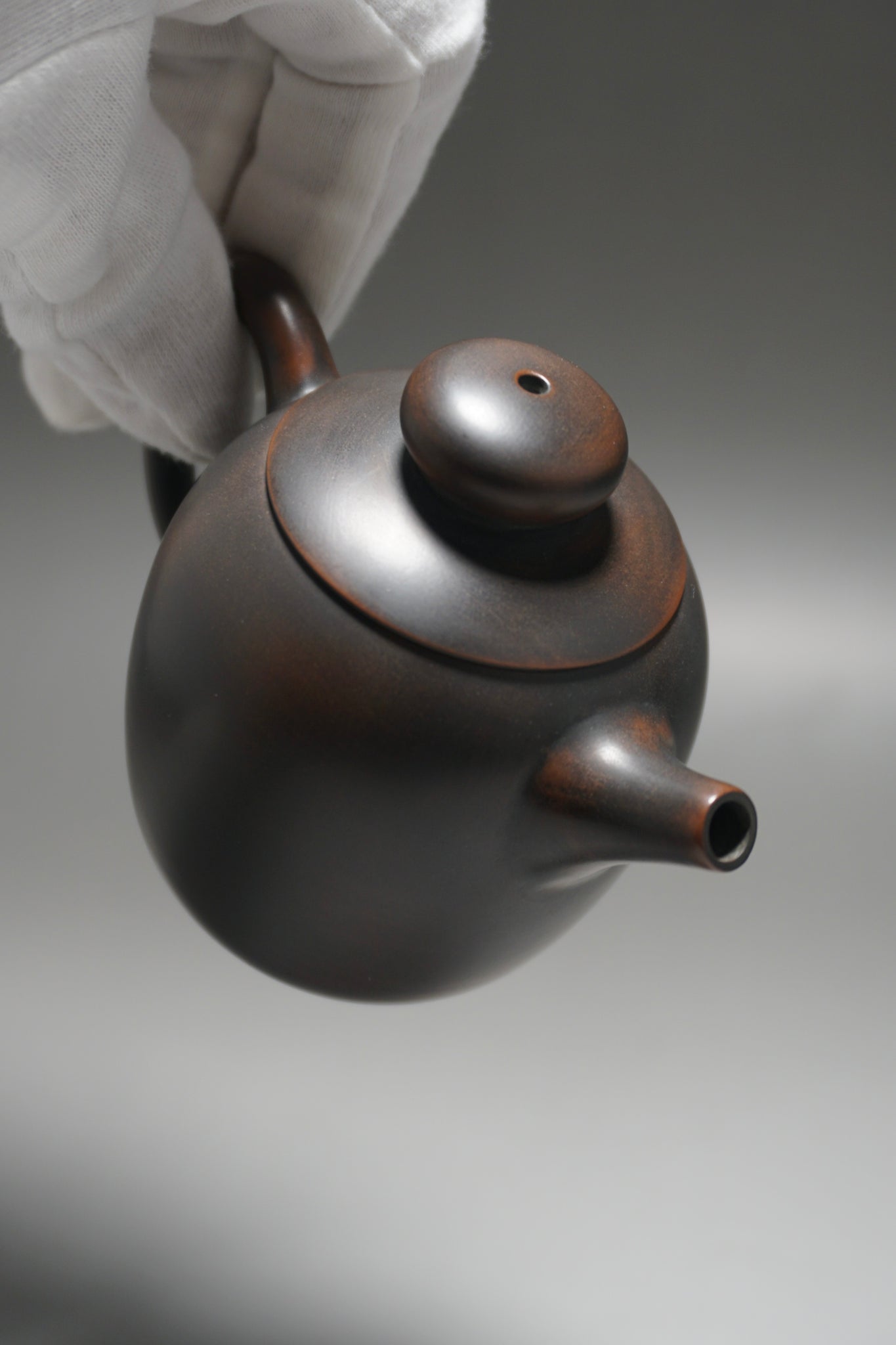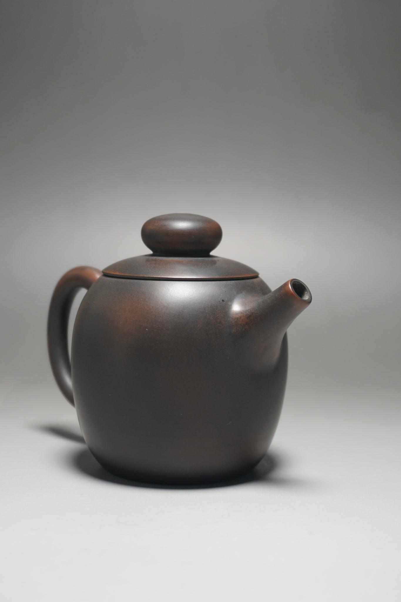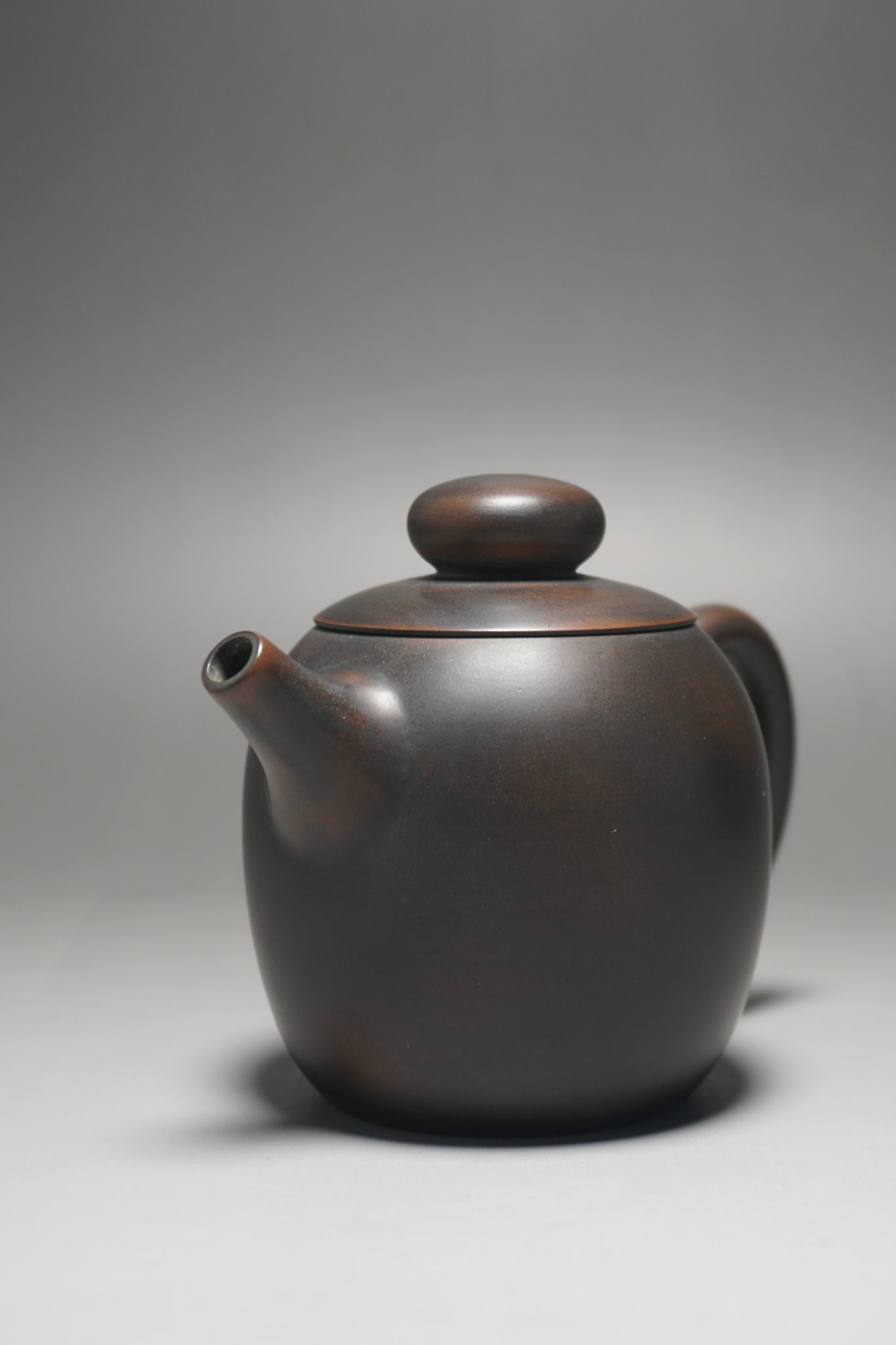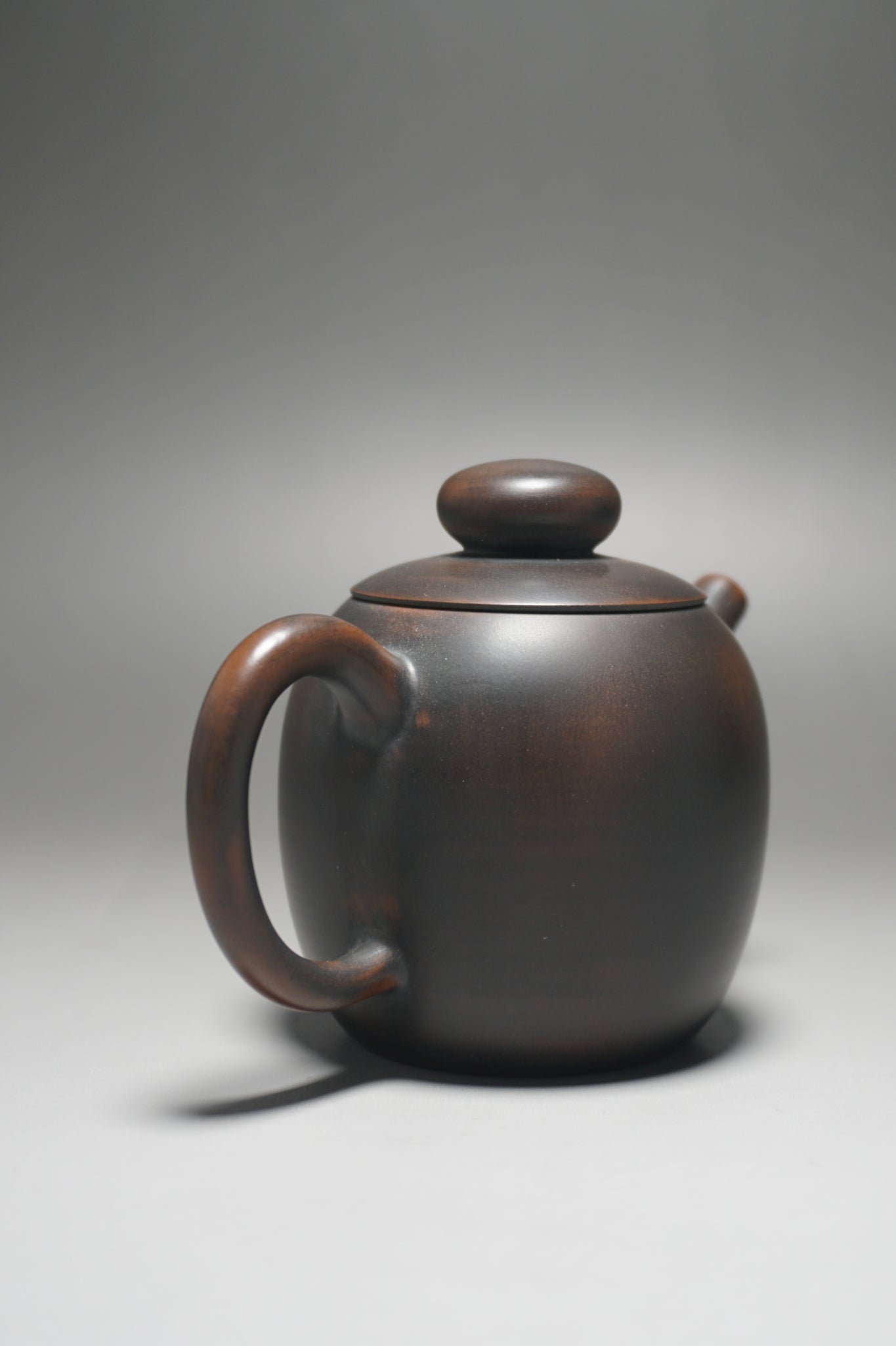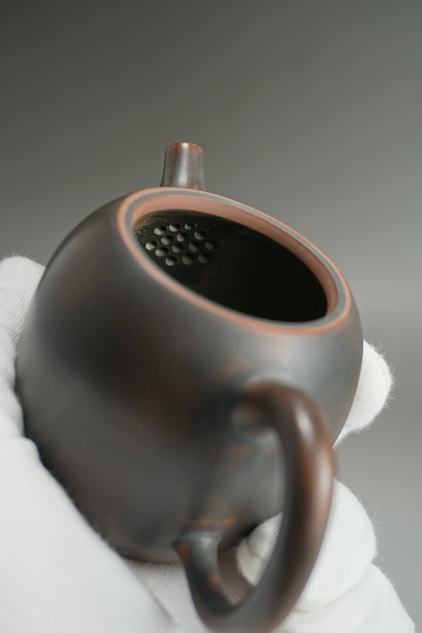 These are wheel thrown Nixing clay teapots. Each are handmade using Nixing Guangxi Clay. The teapot walls are thin-medium thickness. The clay has a mottled, dark grey to bronze brown color which varies between each pot and is a result of the clay's natural colors and the process of firing the clay.