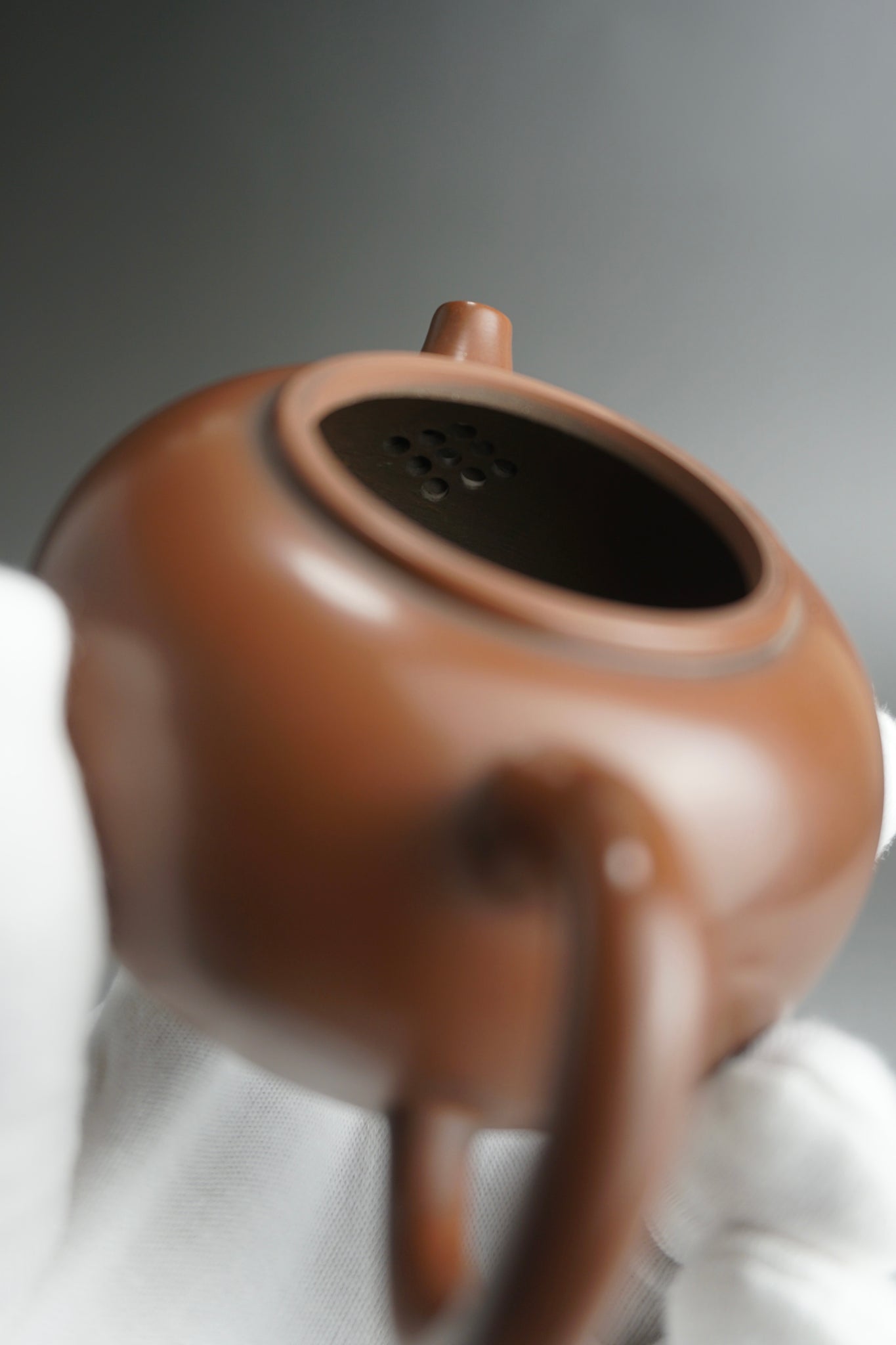 These are wheel thrown Nixing clay teapots. Each are handmade using Nixing Guangxi Clay. The teapot walls are thin-medium thickness. The clay has a mottled, dark grey to bronze brown color which varies between each pot and is a result of the clay's natural colors and the process of firing the clay.