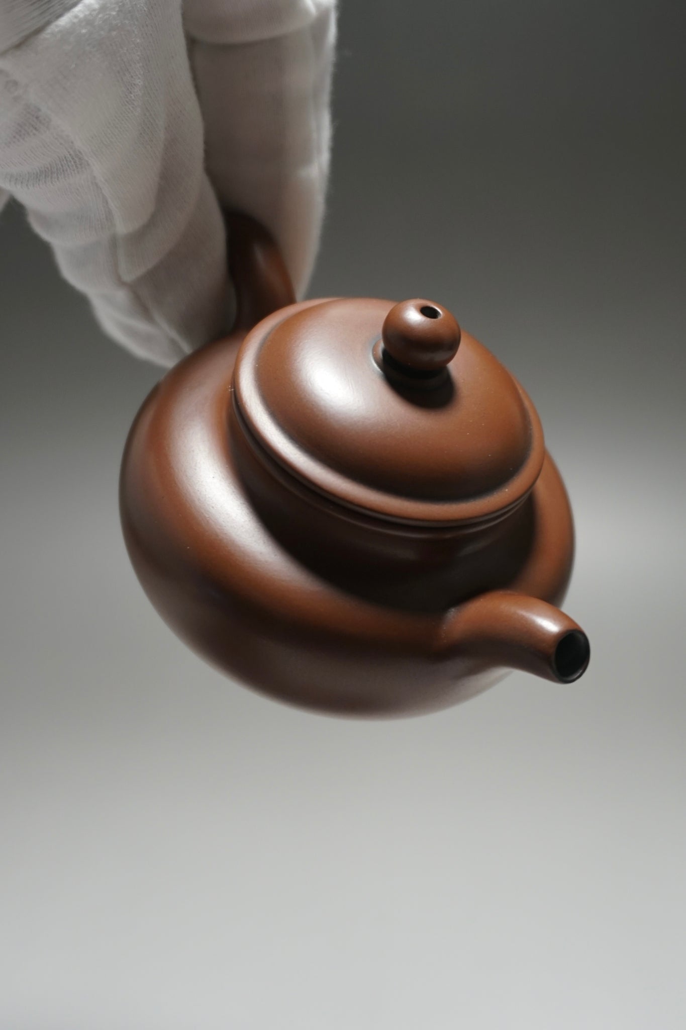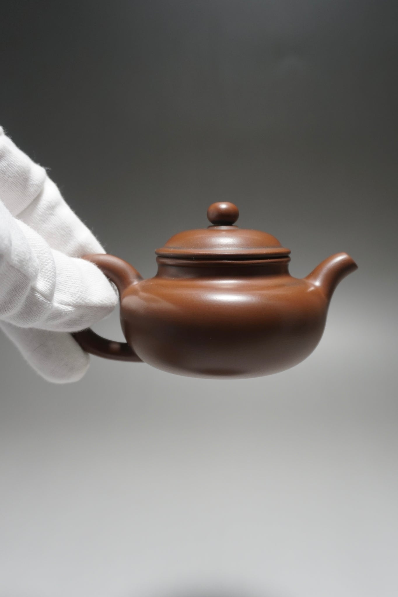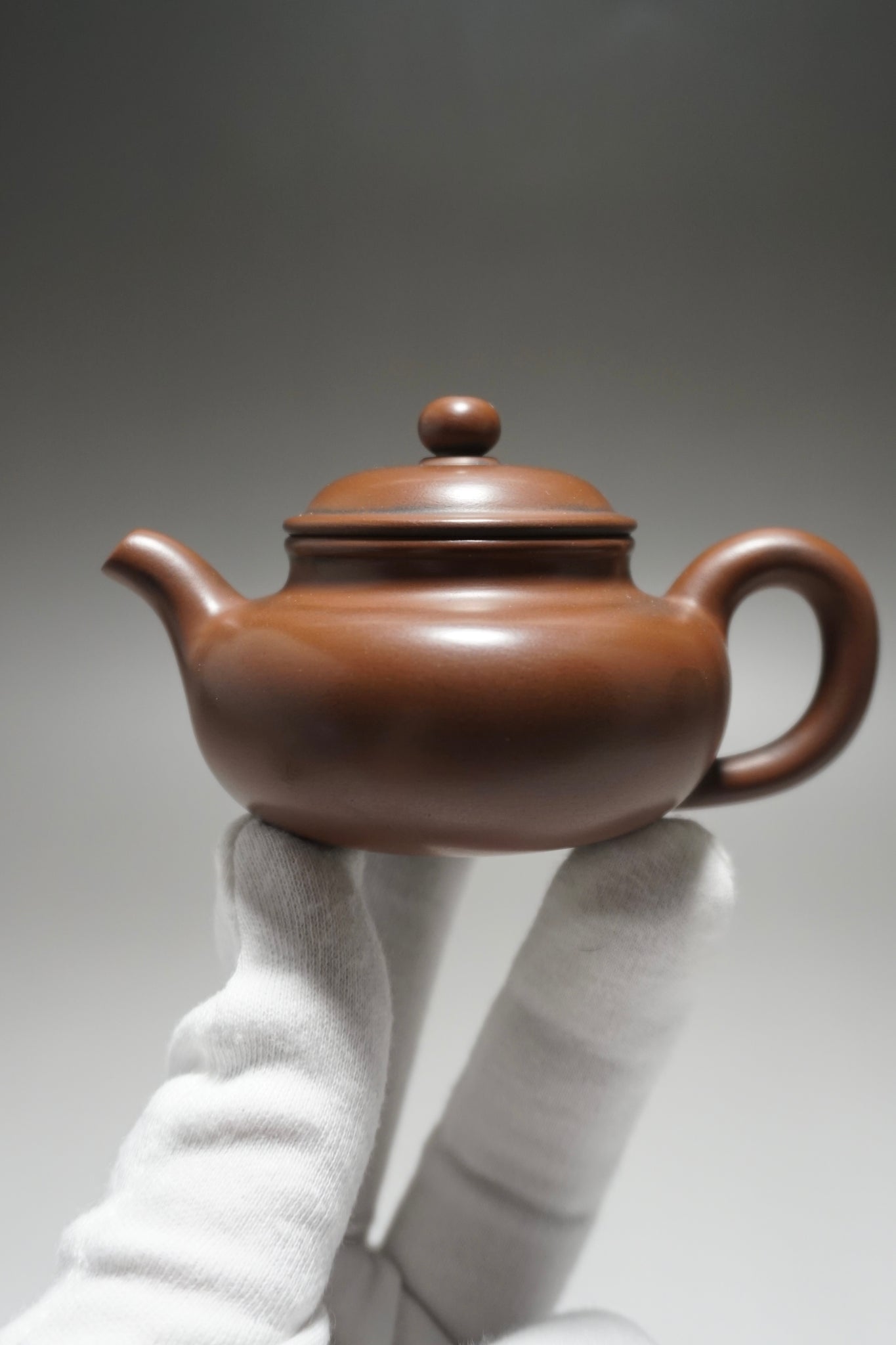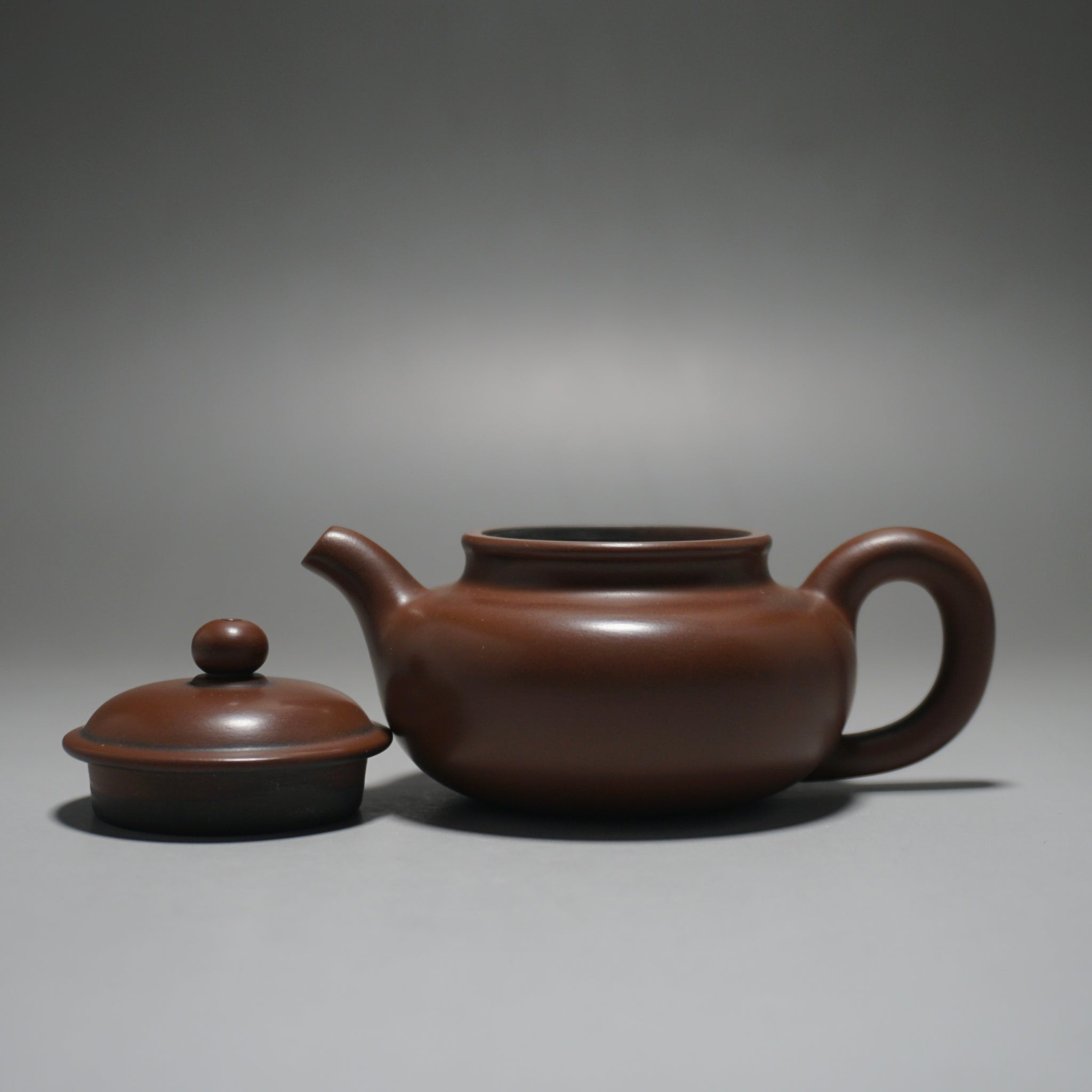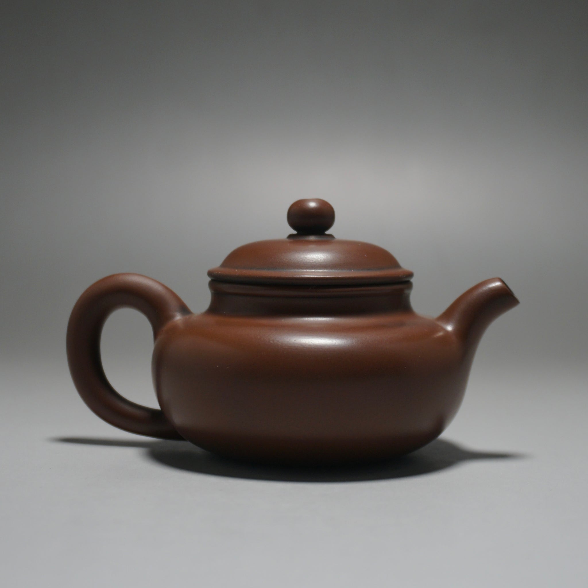 These are wheel thrown Nixing clay teapots. Each are handmade using Nixing Guangxi Clay. The teapot walls are thin-medium thickness. The clay has a mottled, dark grey to bronze brown color which varies between each pot and is a result of the clay's natural colors and the process of firing the clay.