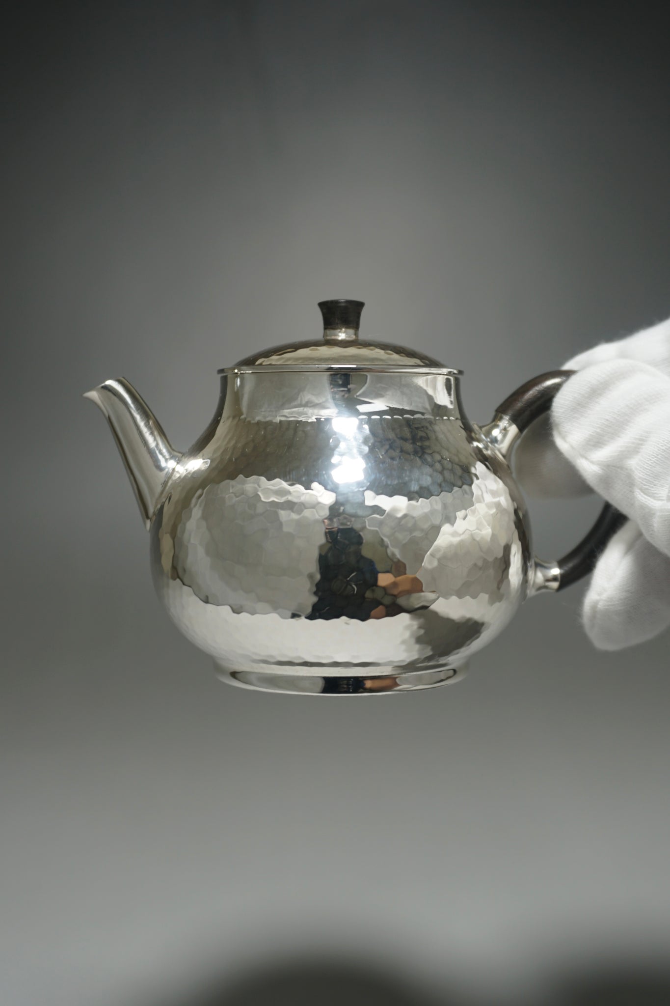The teapots are made using National Standard Certified 9999 Silver or 99.99% pure (see photo below showing the government issued certificate of silver purity which is included). After the silversmith has melted and shaped the teapot, the silver is guaranteed to be not less than 99.9% pure silver. 999 is the highest market standard for a silver teapot.