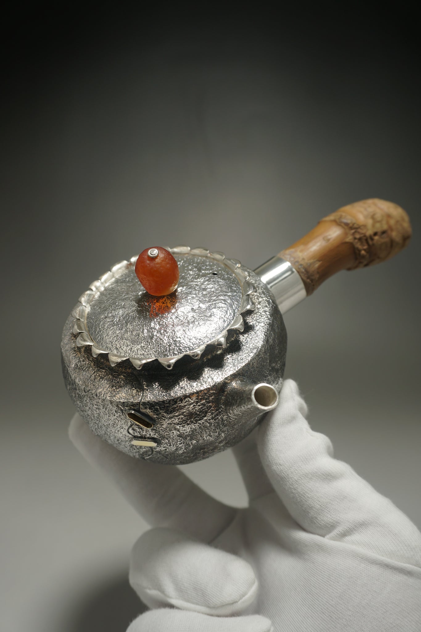 A functional piece of art and future heirloom, these teapots are crafted and hammered by hand by experienced silversmiths in their workshop in Yunnan, China