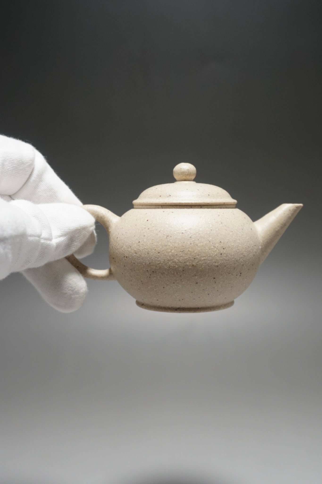 This Yixing Teapot is made from Original Ore Baiyuduan 原矿白玉段。The clay has a cool light yellow colour. Like other duanni, baiyuduan is favoured for rounding out the harsher notes of some teas. It is very porous compared to other zisha and is better at retaining heat.