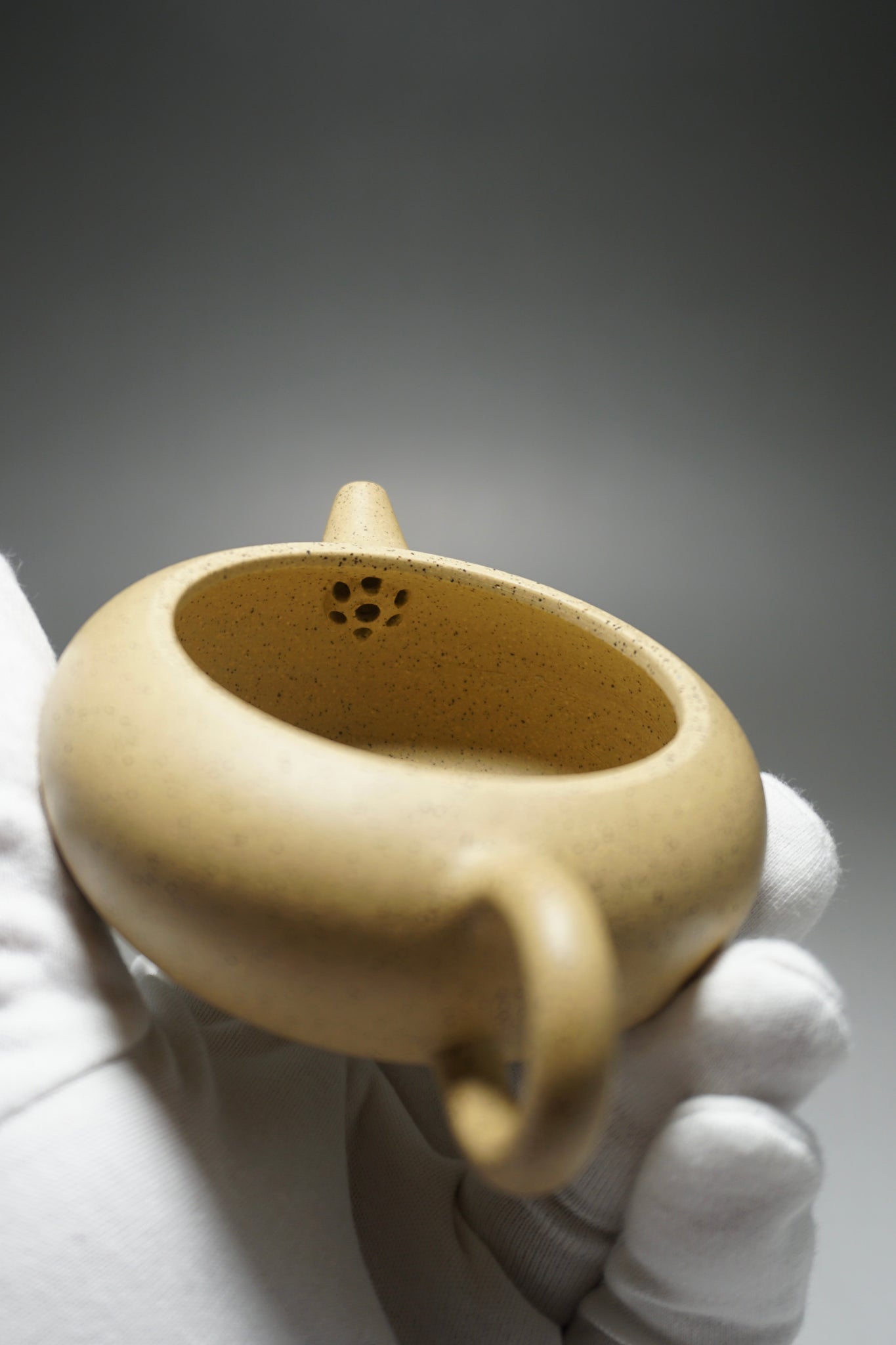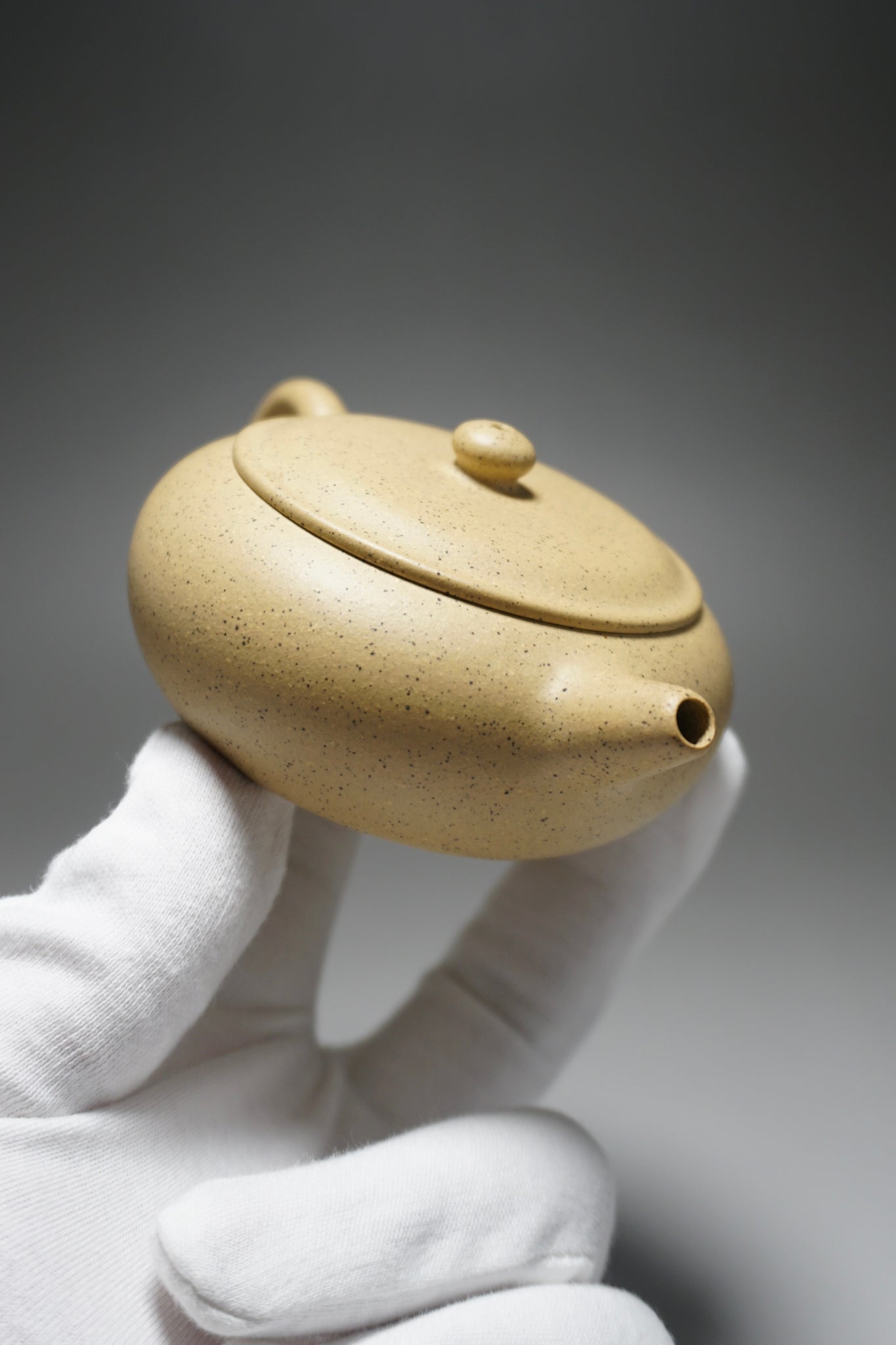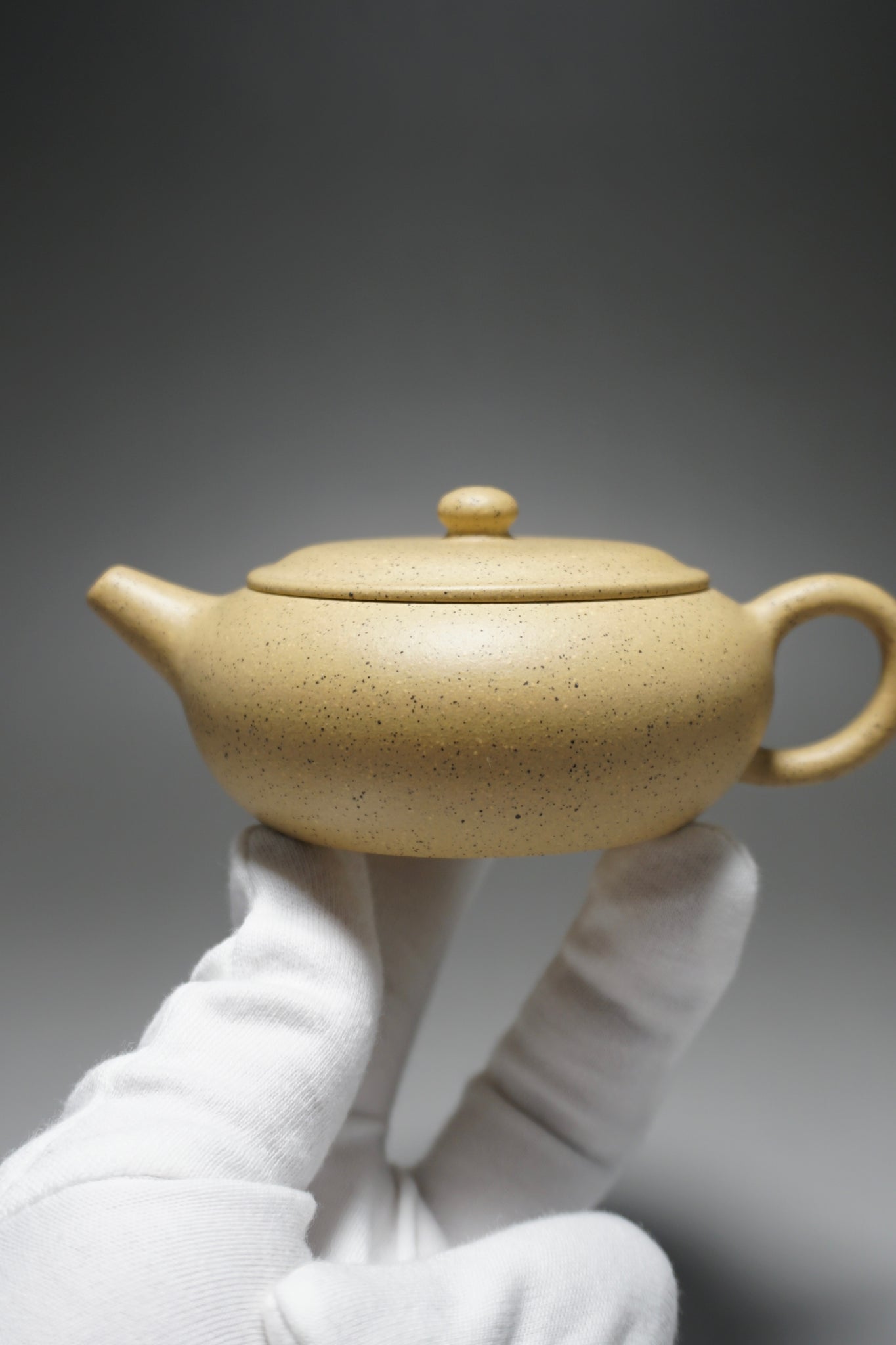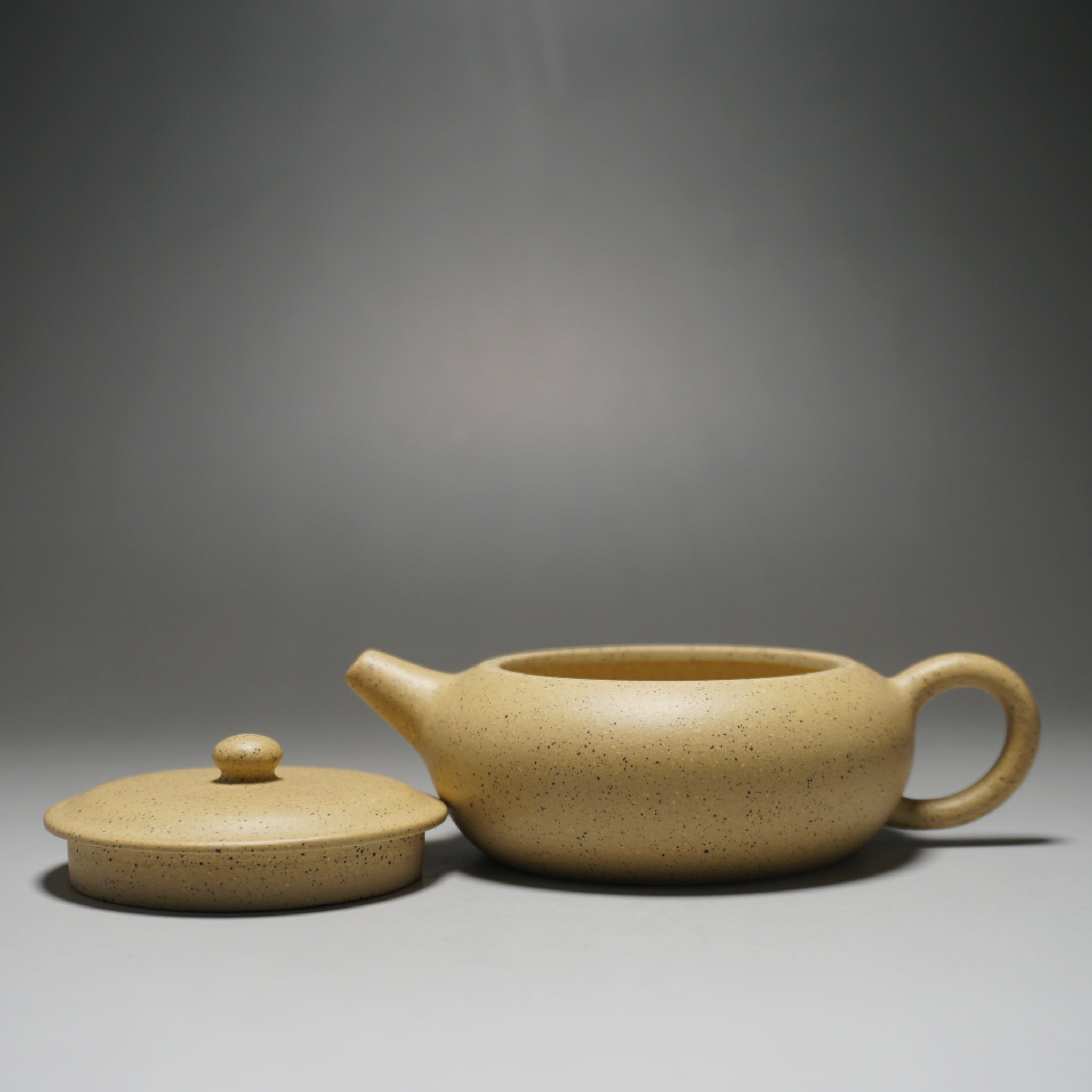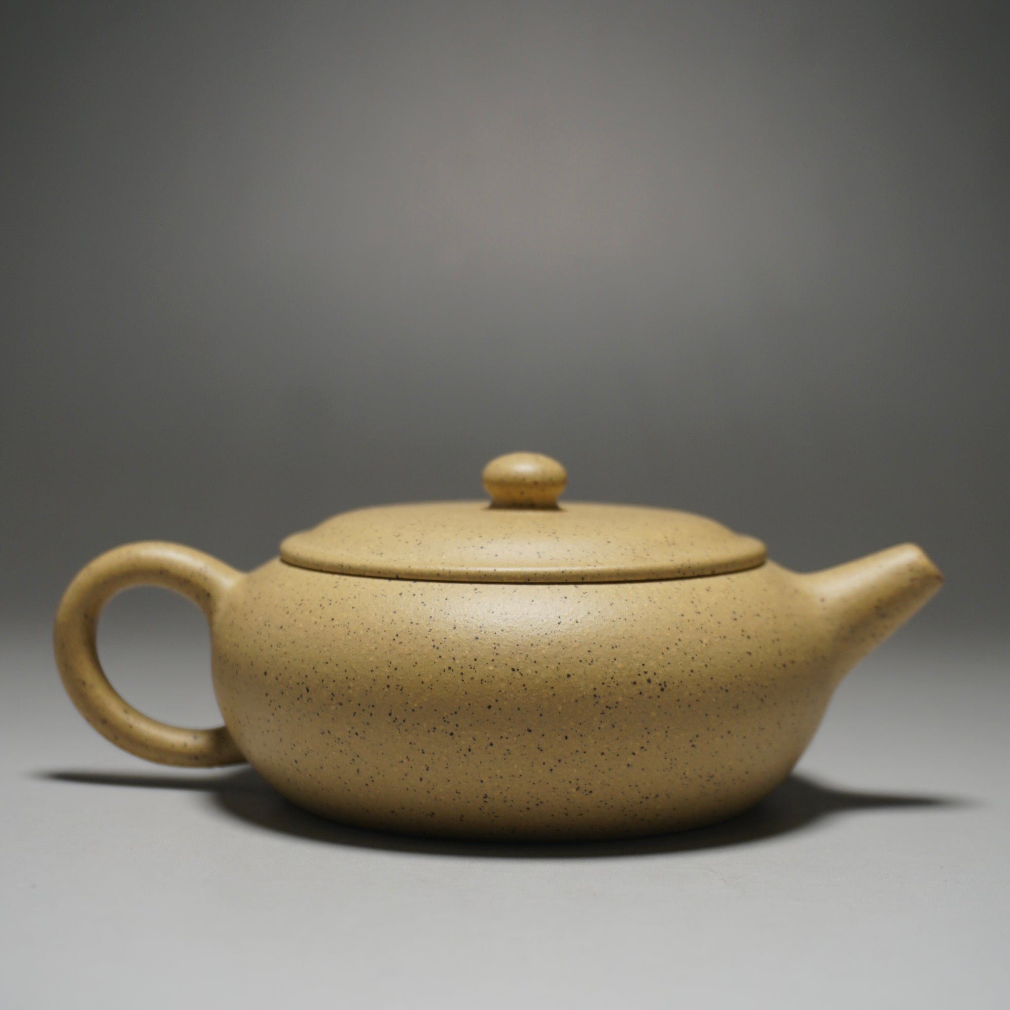 This is an yixing teapot made from benshan lüni 本山绿泥, a rarer kind of Yixing clay (zisha) with a pale yellow tone. This clay is favoured for rounding out the harsher notes of some teas. It is very porous compared to other zisha and is better at retaining heat.