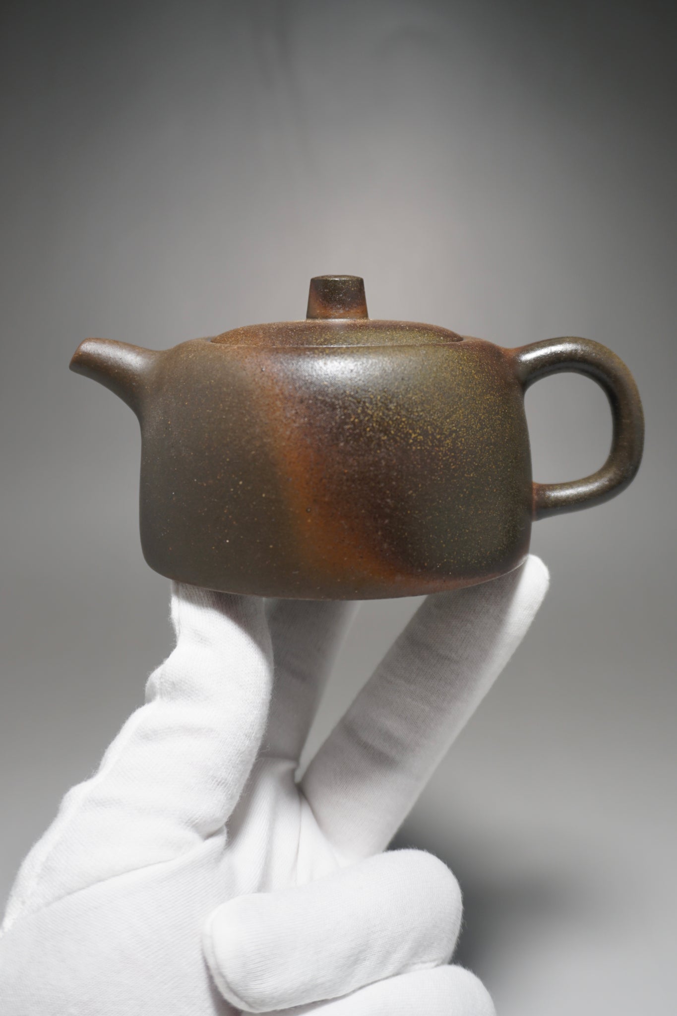 This teapot was fired in a traditional wood kiln in Yixing. The pattern, color and finish are the result of being fired uncovered in a wood kiln for 3 days and 4 nights. The pine wood ash falls on the surface of the teapot forming a natural glaze that is sometimes glossy black, red, brown, yellow, green or any combination of these colors. Wood Fired Yixing Teapots each have their own special appearance, no two are the same. Photos are of actual teapot.