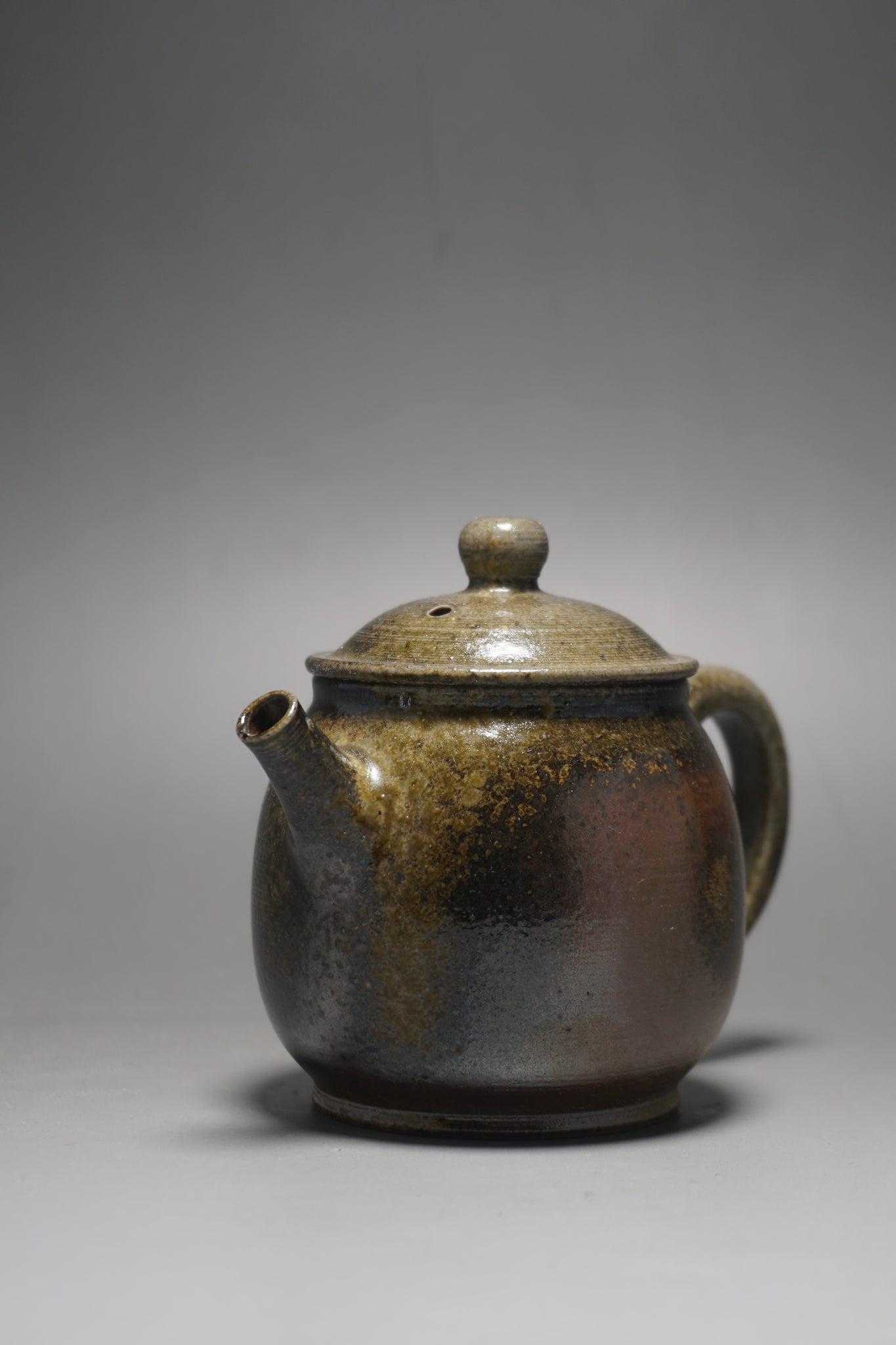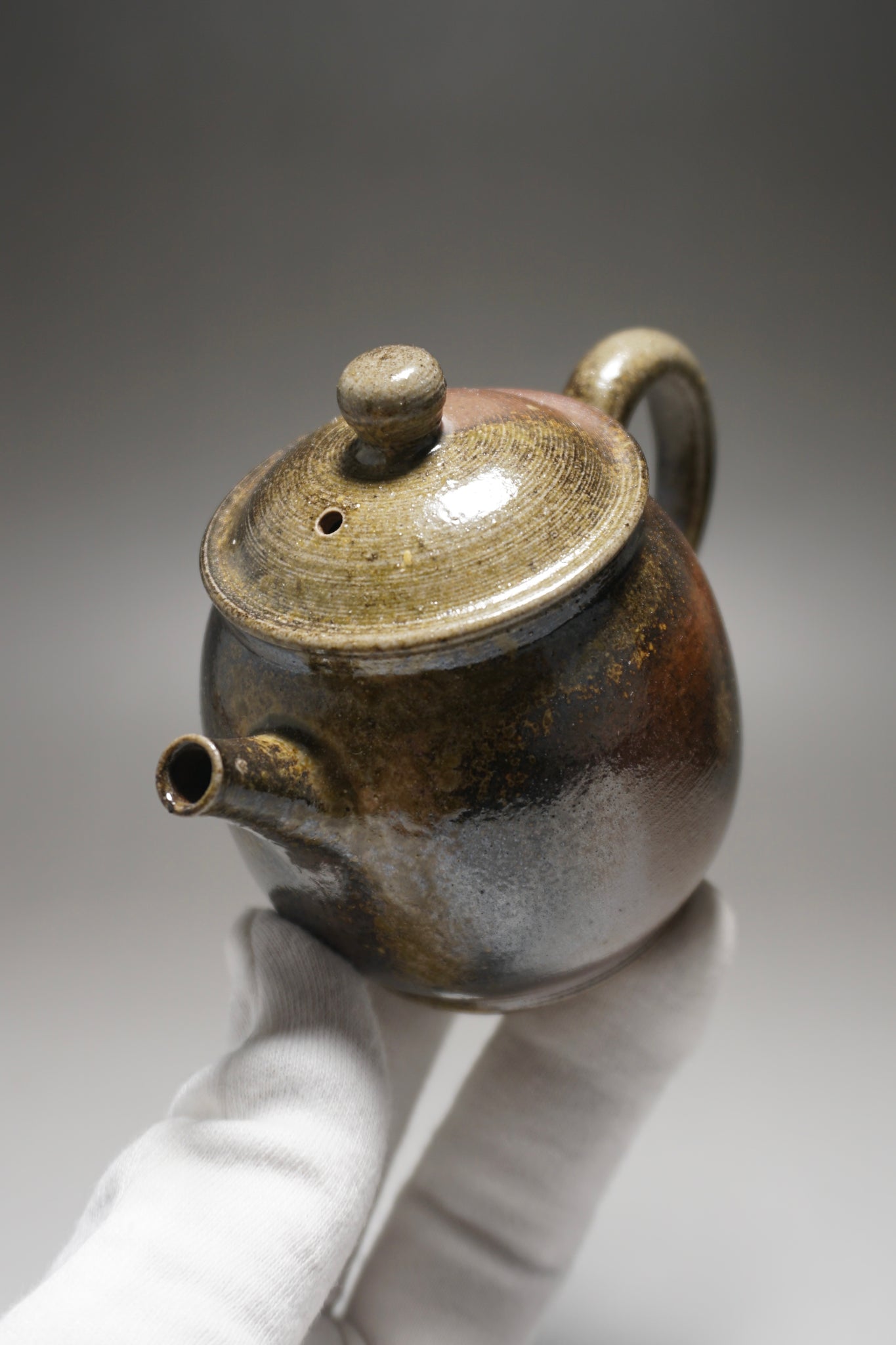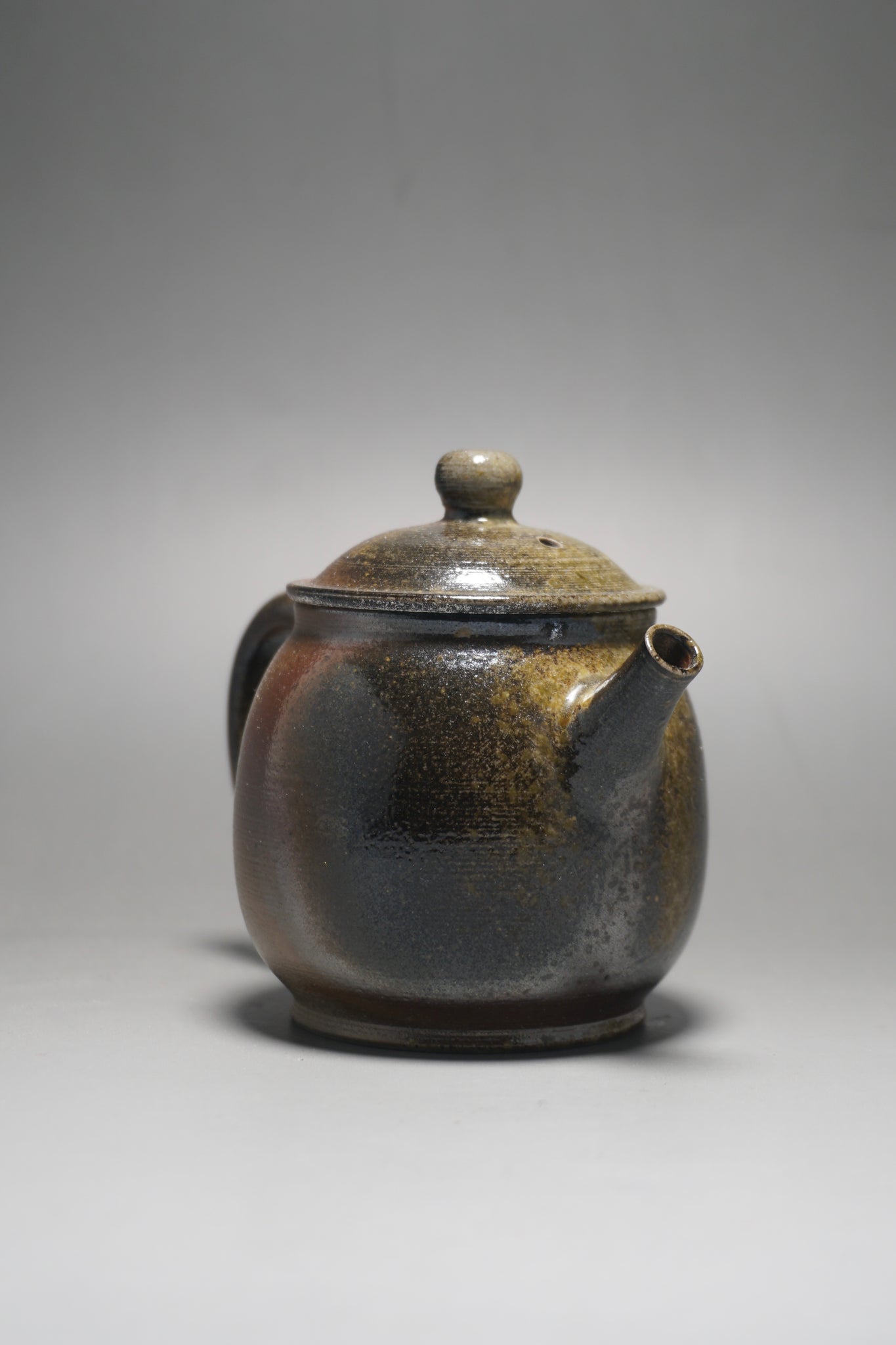 This wood fired teapot features a natural wood ash from being fired uncovered in a wood kiln, as a result areas of the teapot may appear rough or smooth with irregular glazing. Some areas, particularly the bottom of the pot, may appear rougher (see photos).