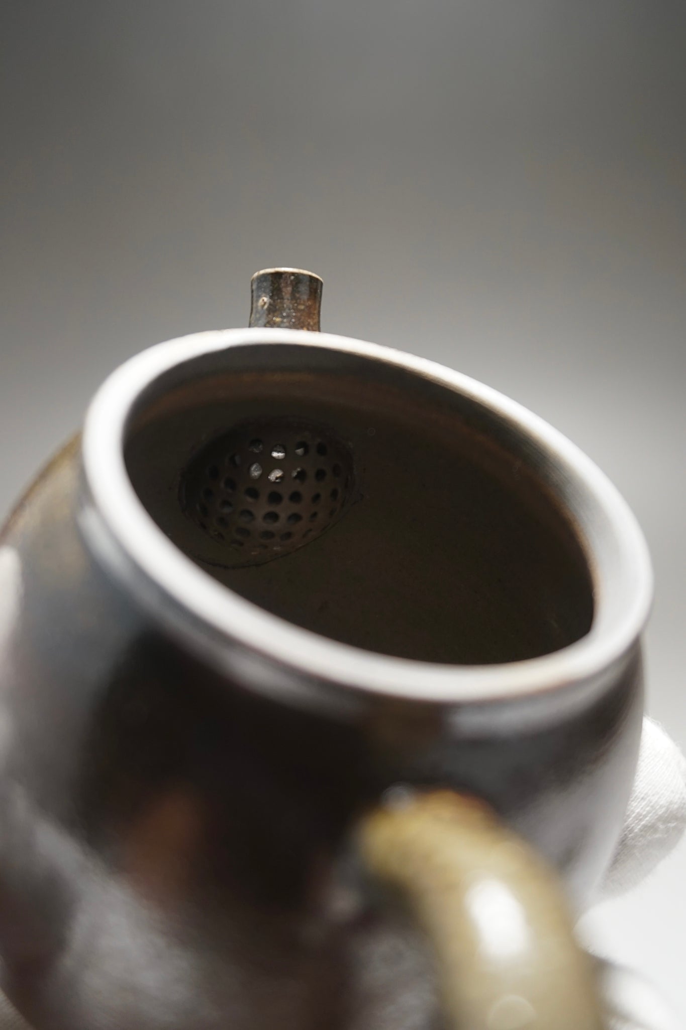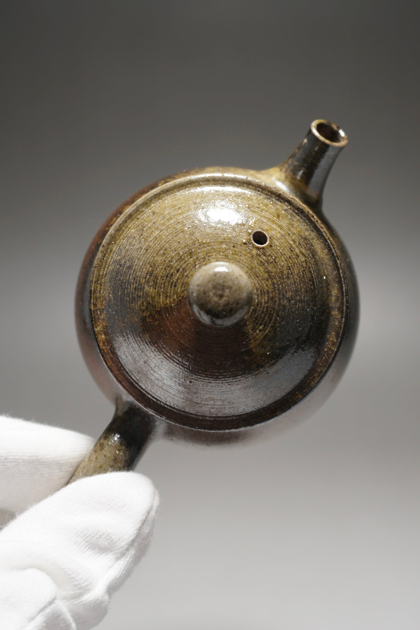This teapot was fired in the traditional wood kiln of the studio using pine wood as fuel. Firing nixing teapots this way is riskier than in a modern kiln and not all pieces survive the process. The teapot spent around two weeks in the kiln. The different colours and patterns on the surface of the clay are a result of the natural wood ash glaze formed by some of the pine ash when it touches the surface of the clay. The glaze is partial and only on the outside surface, leaving the nixing clay to retain its porous nature.
