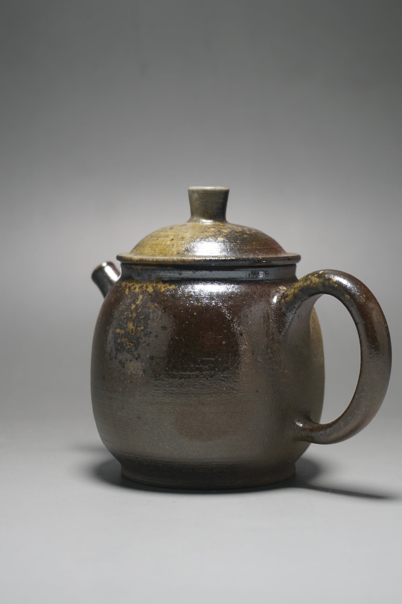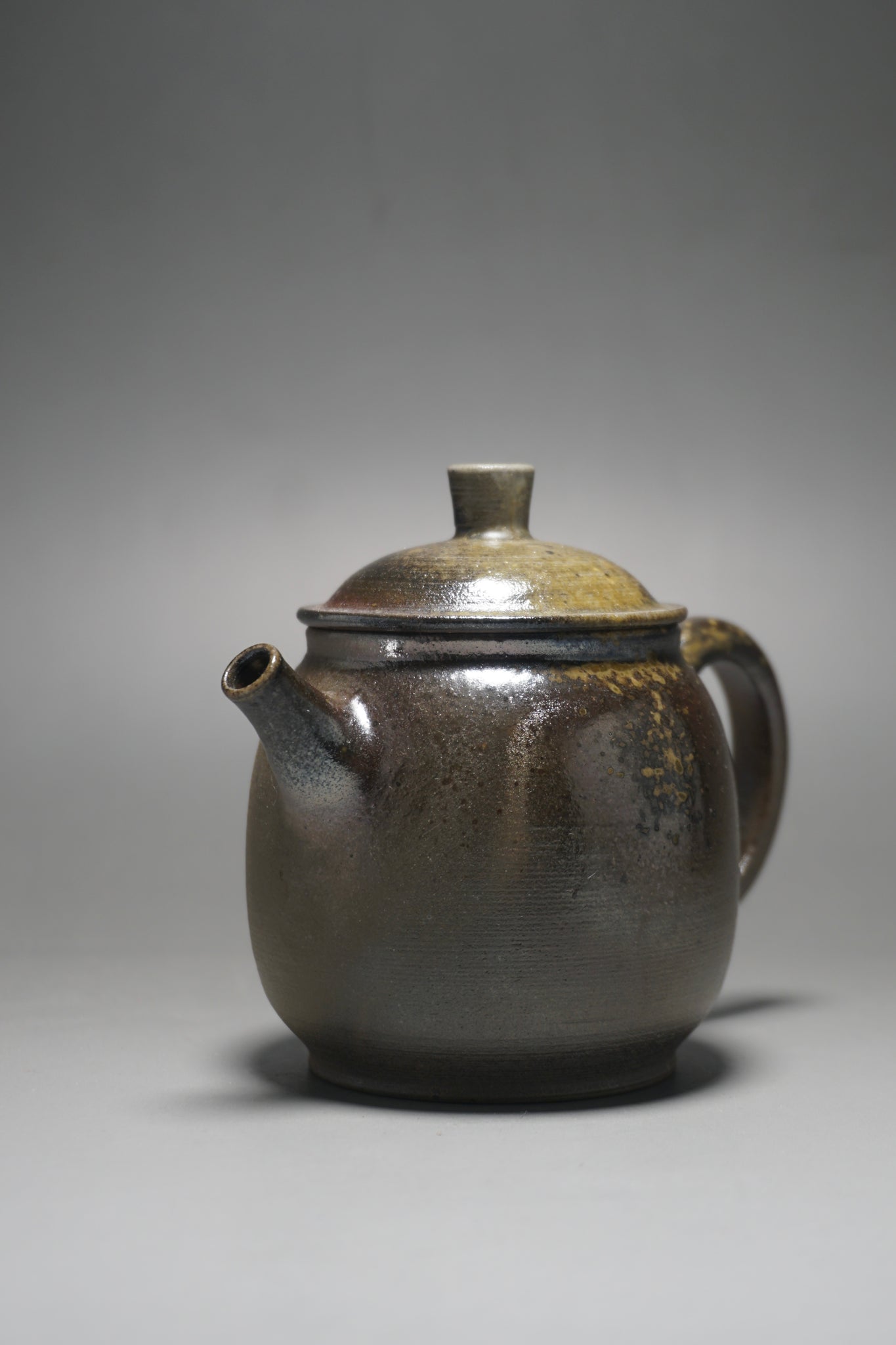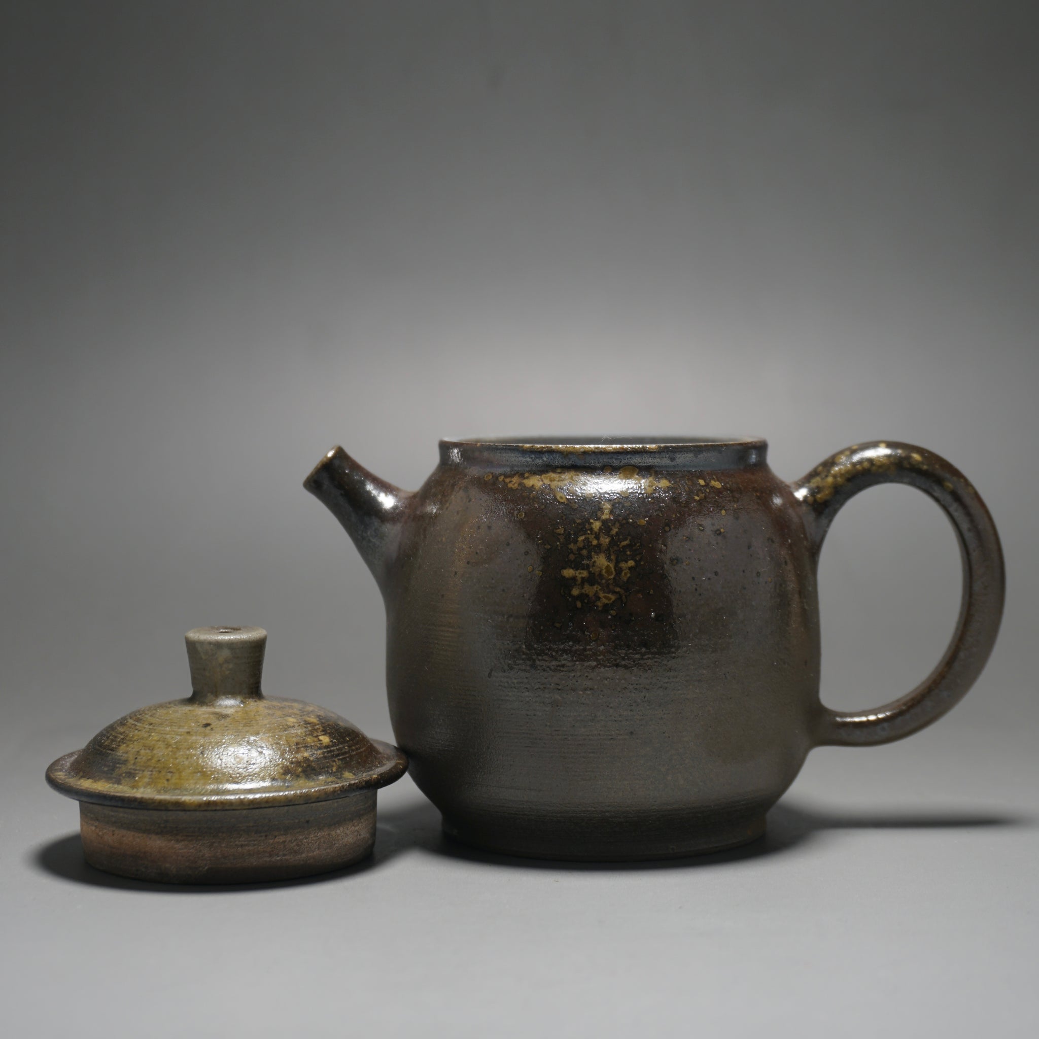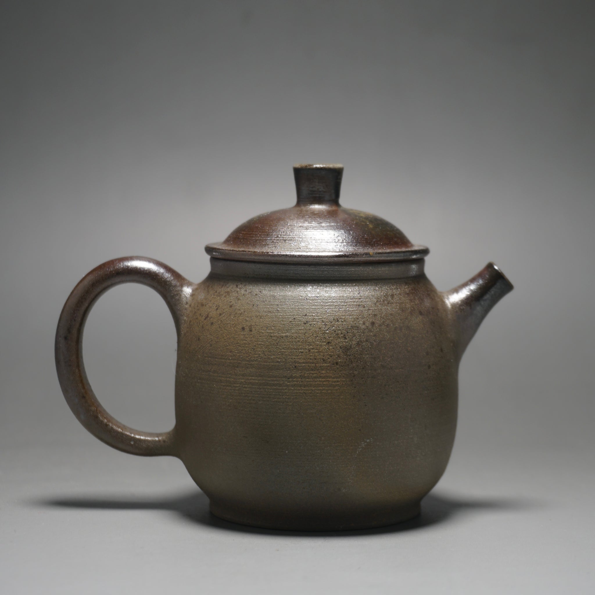 This wood fired teapot features a natural wood ash from being fired uncovered in a wood kiln, as a result areas of the teapot may appear rough or smooth with irregular glazing. Some areas, particularly the bottom of the pot, may appear rougher (see photos).