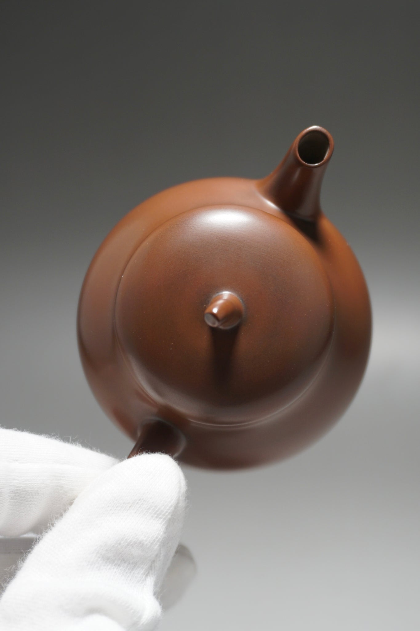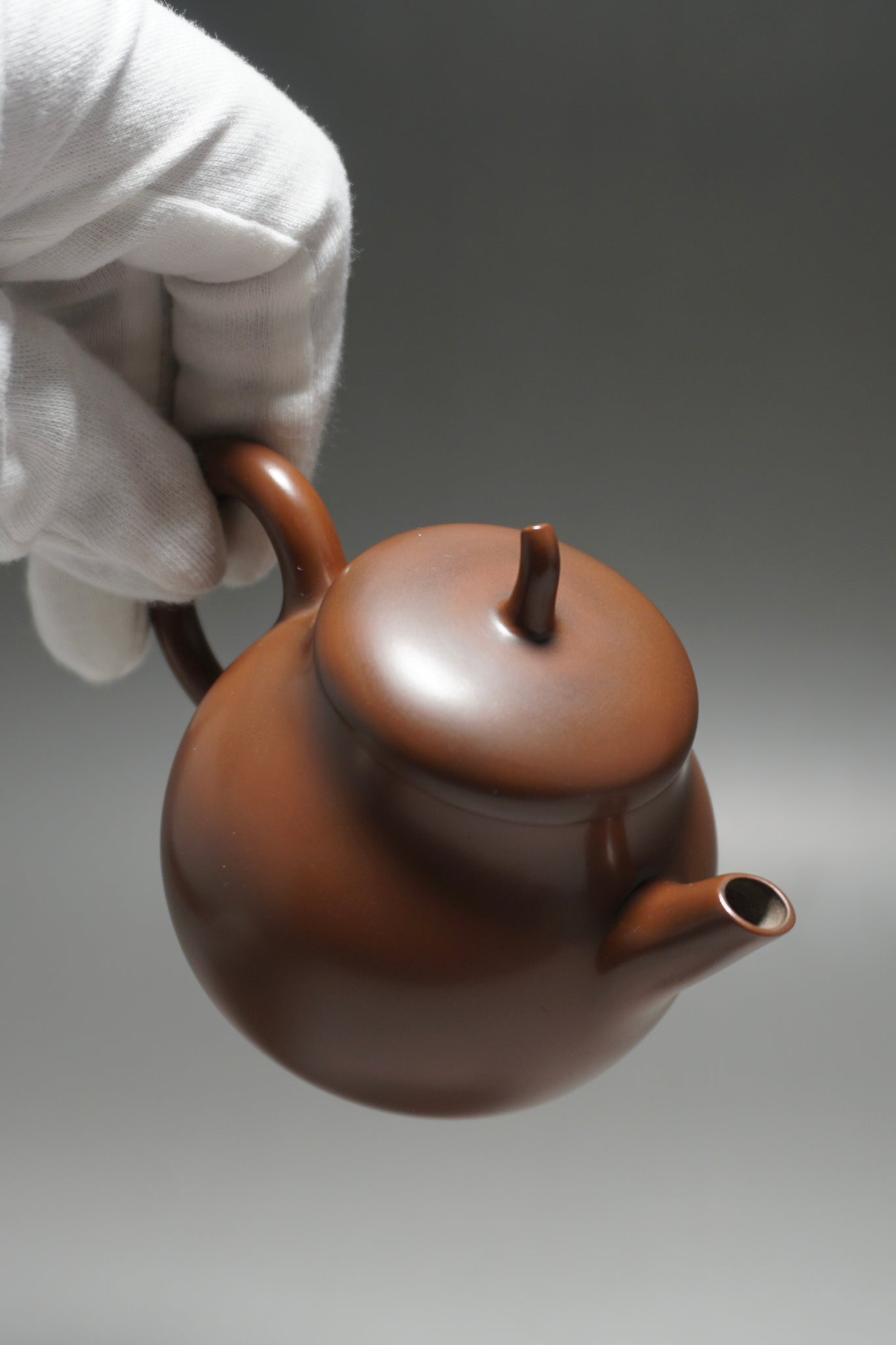 These are wheel thrown Nixing clay teapots. Each are handmade using Nixing Guangxi Clay. The teapot walls are thin-medium thickness. The clay has a mottled, dark grey to bronze brown color which varies between each pot and is a result of the clay's natural colors and the process of firing the clay.
