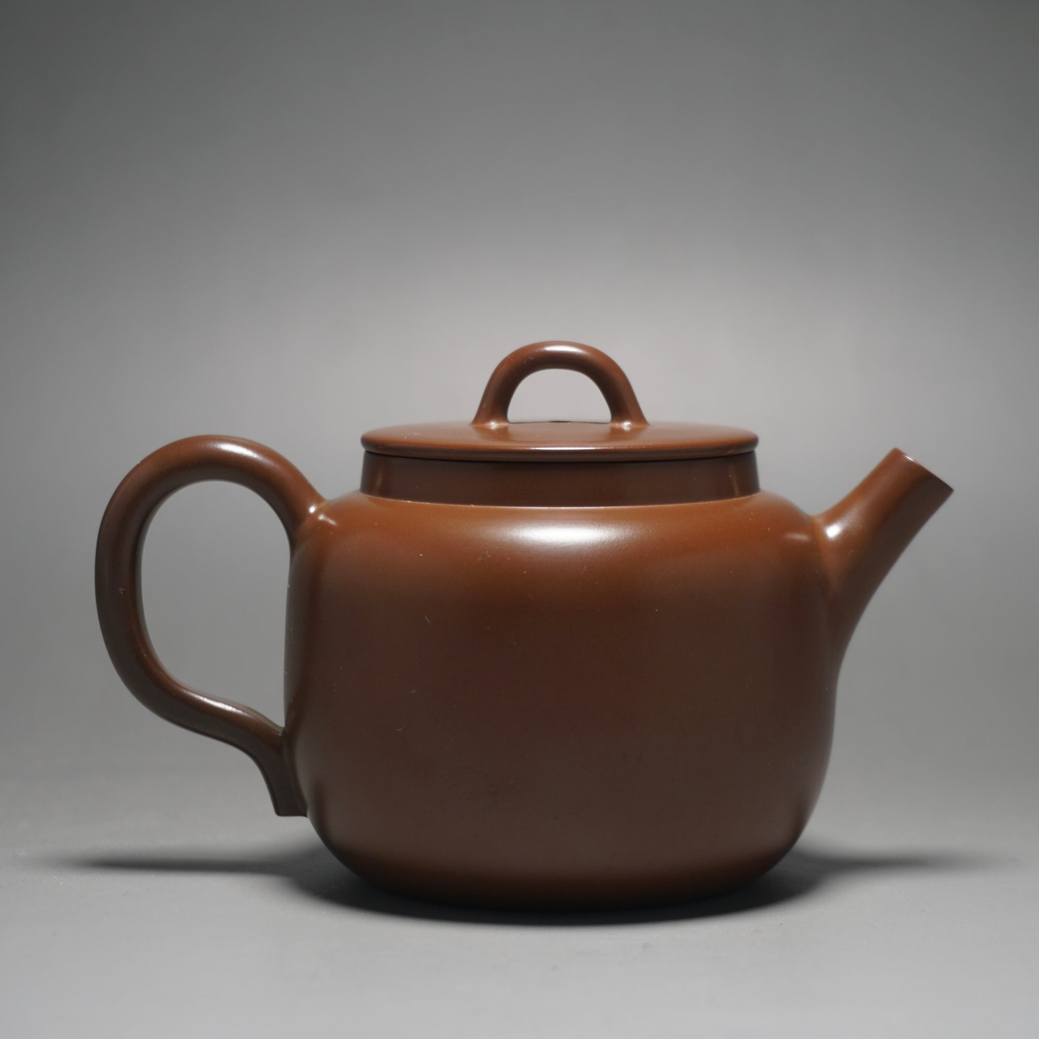 These are wheel thrown Nixing clay teapots. Each are handmade using Nixing Guangxi Clay. The teapot walls are thin-medium thickness. The clay has a mottled, dark grey to bronze brown color which varies between each pot and is a result of the clay's natural colors and the process of firing the clay.