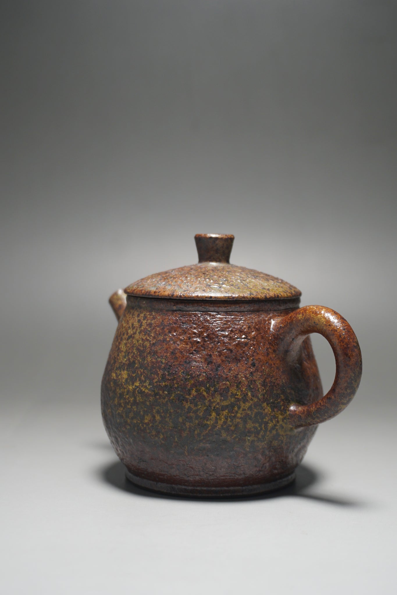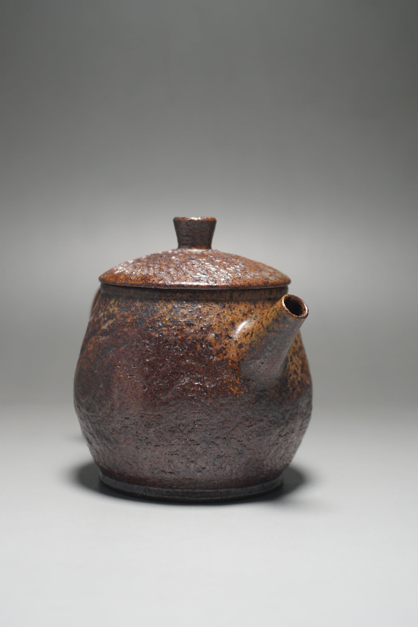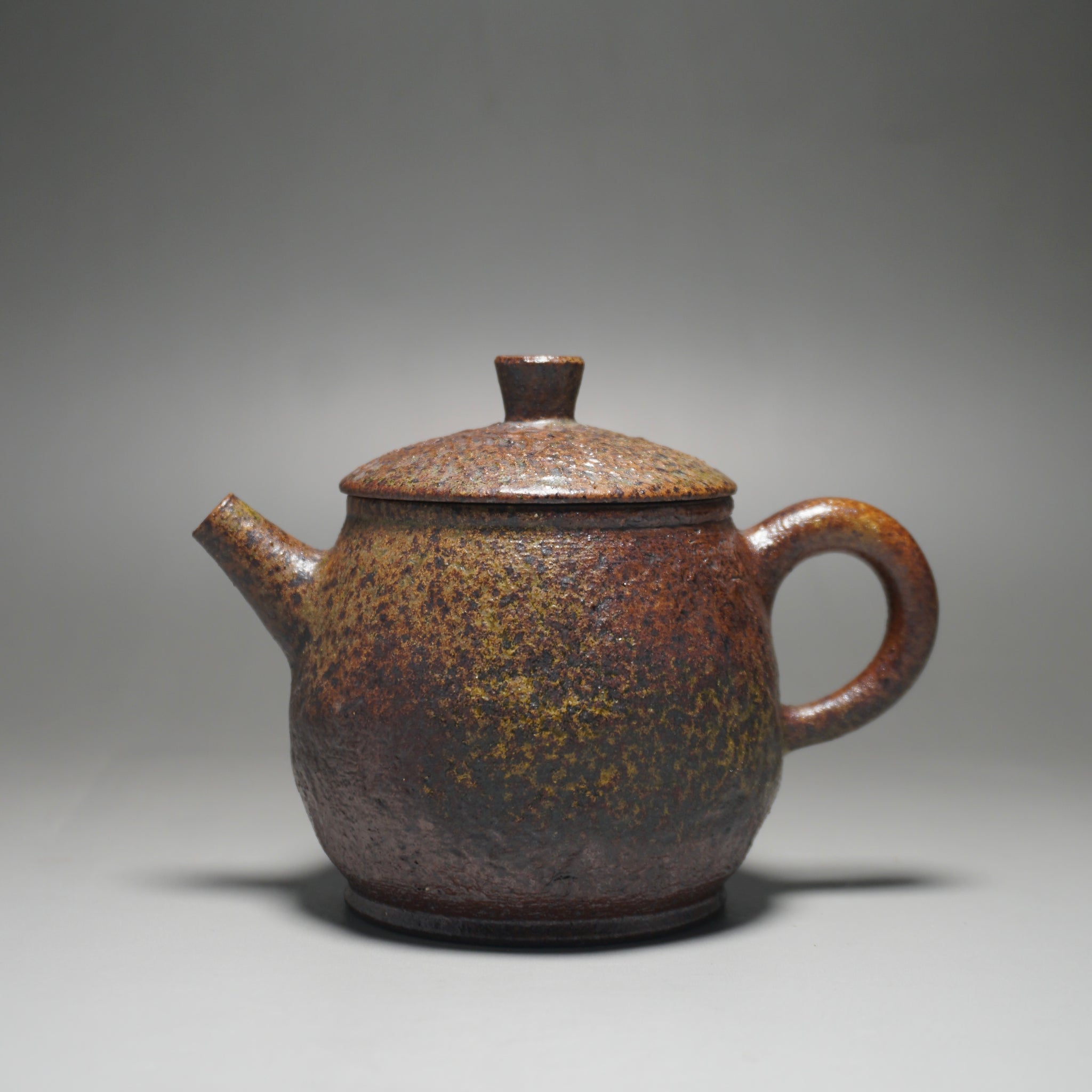 This wood fired teapot features a natural wood ash from being fired uncovered in a wood kiln, as a result areas of the teapot may appear rough or smooth with irregular glazing. Some areas, particularly the bottom of the pot, may appear rougher (see photos).
