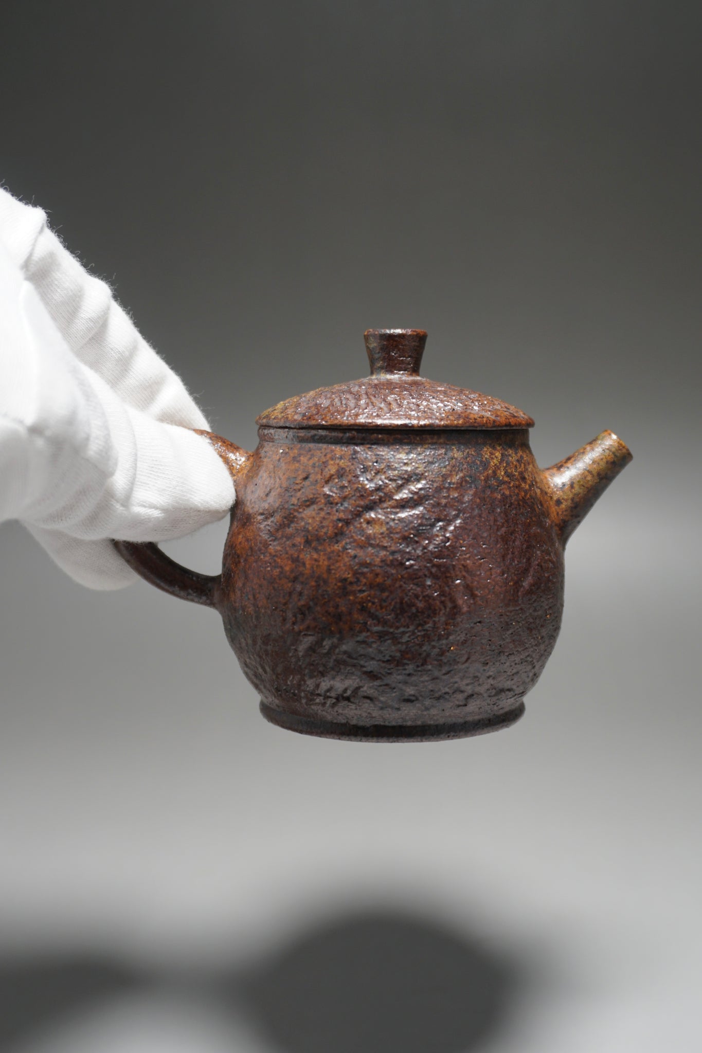 The Teapot was thrown and shaped by hand.