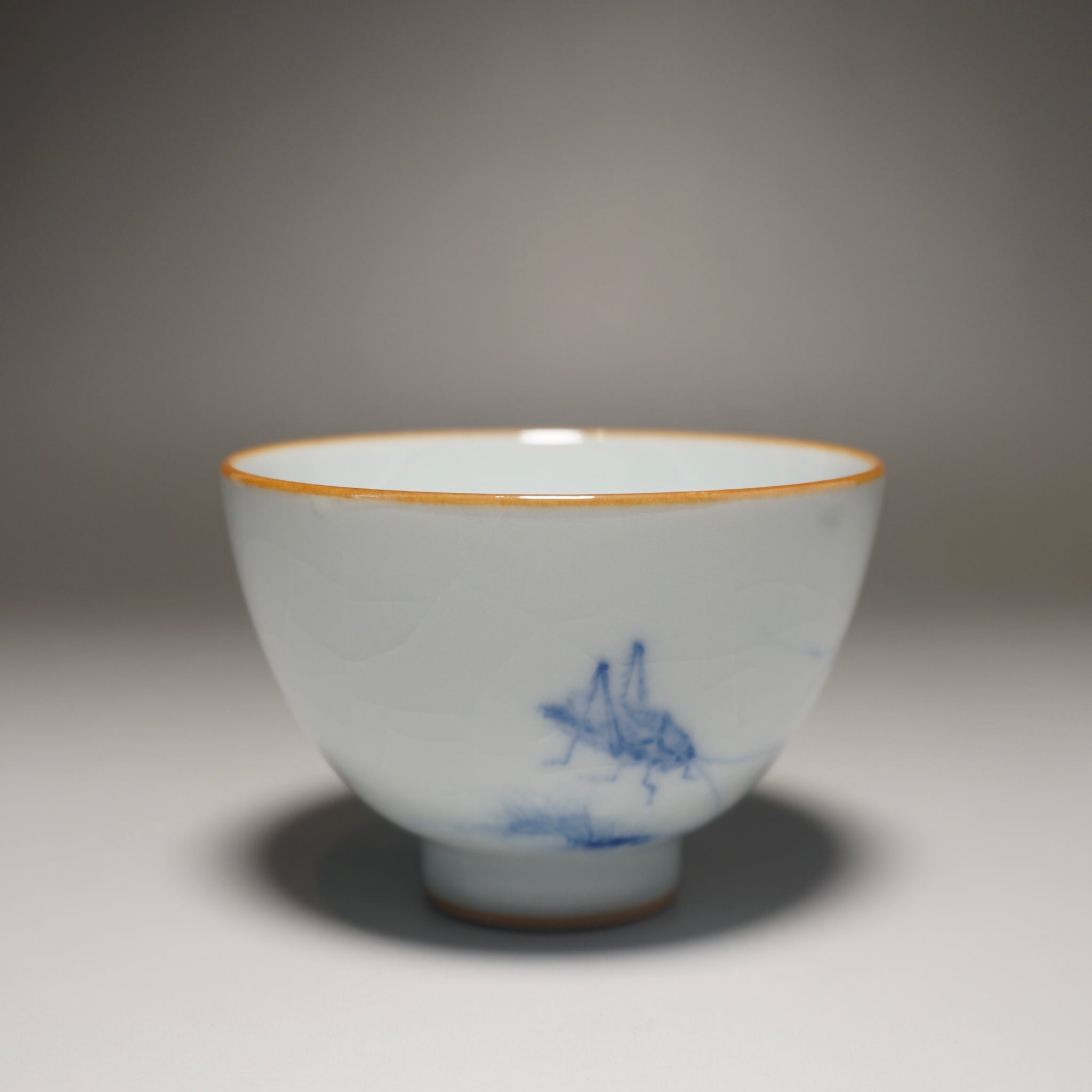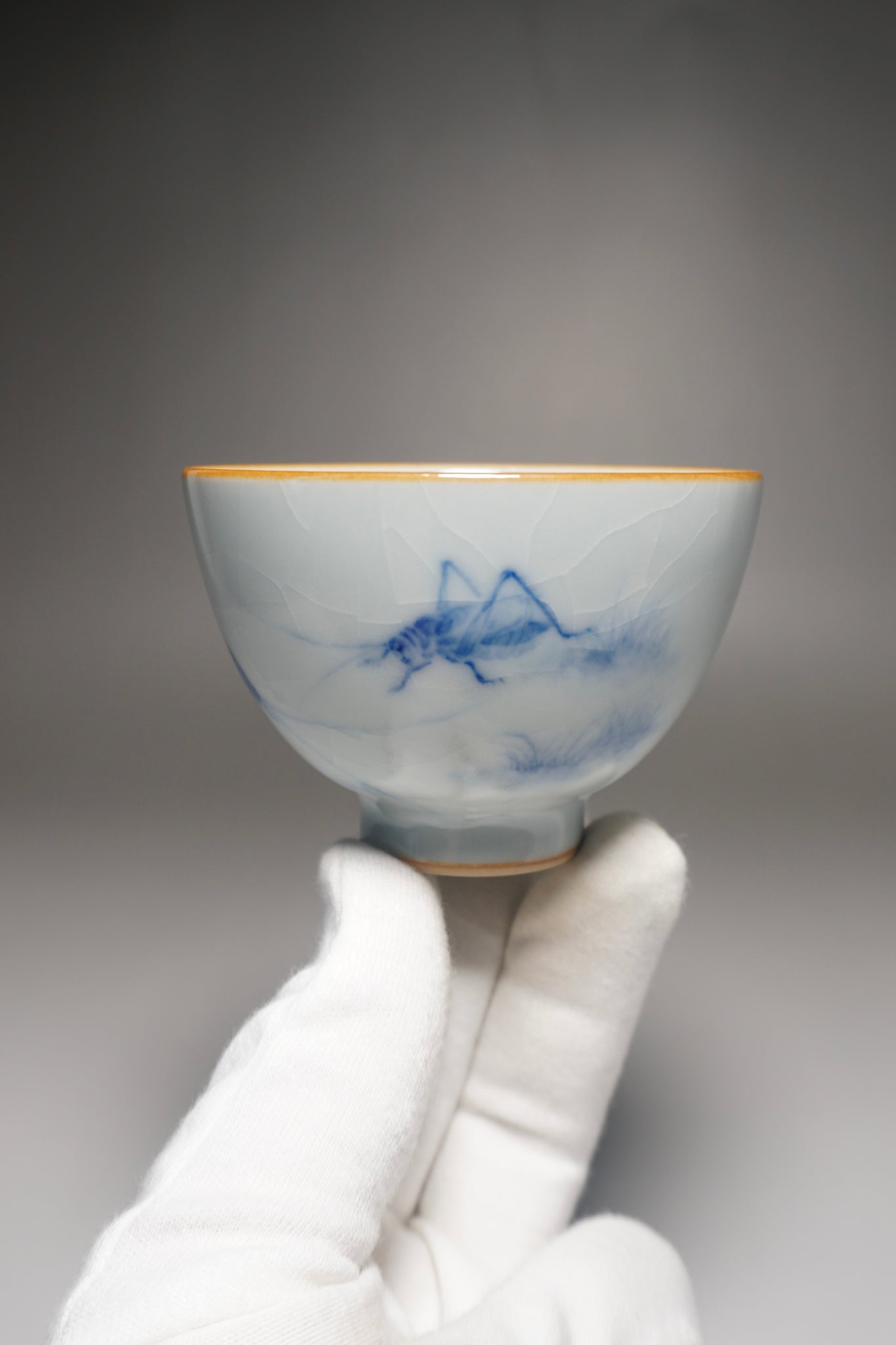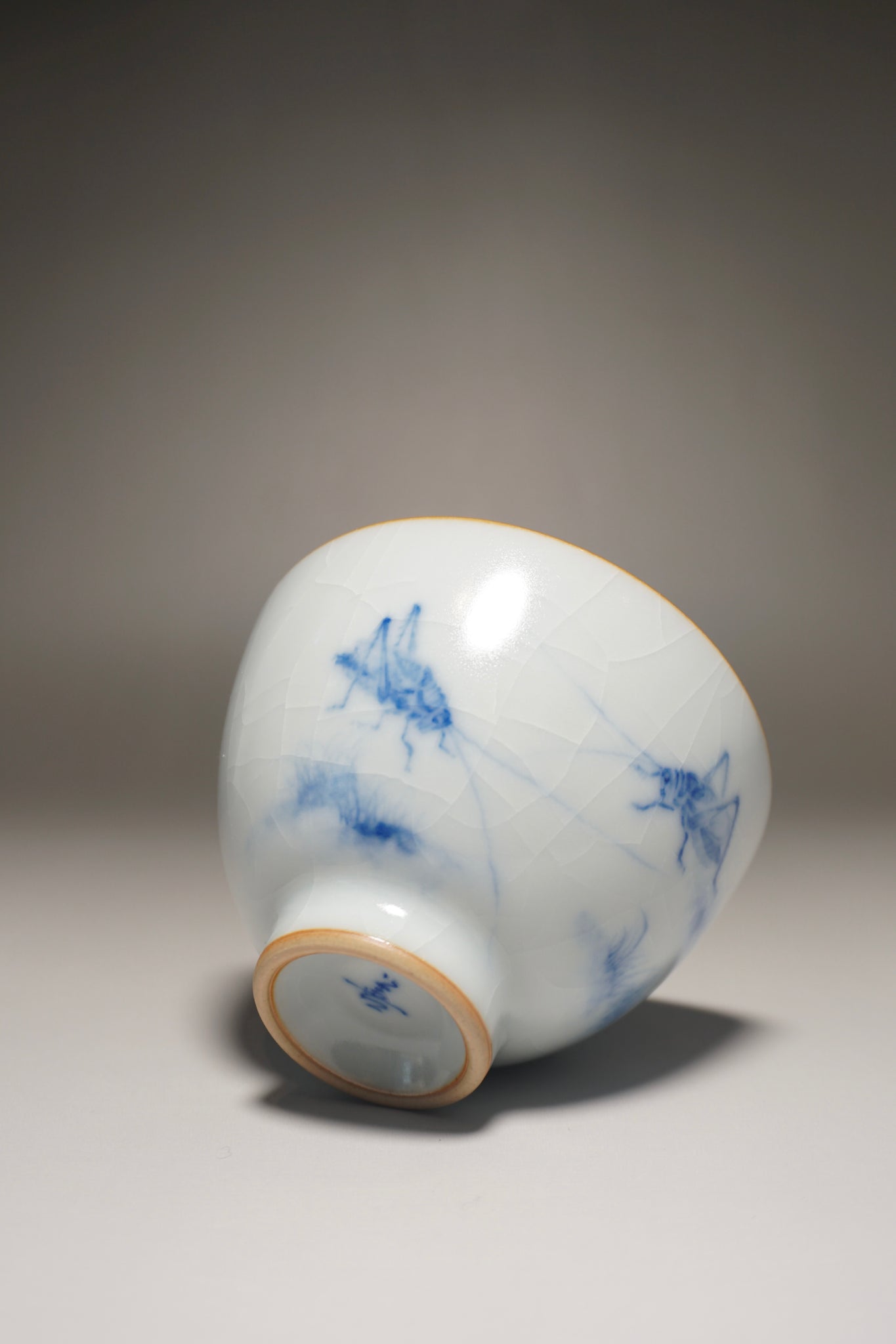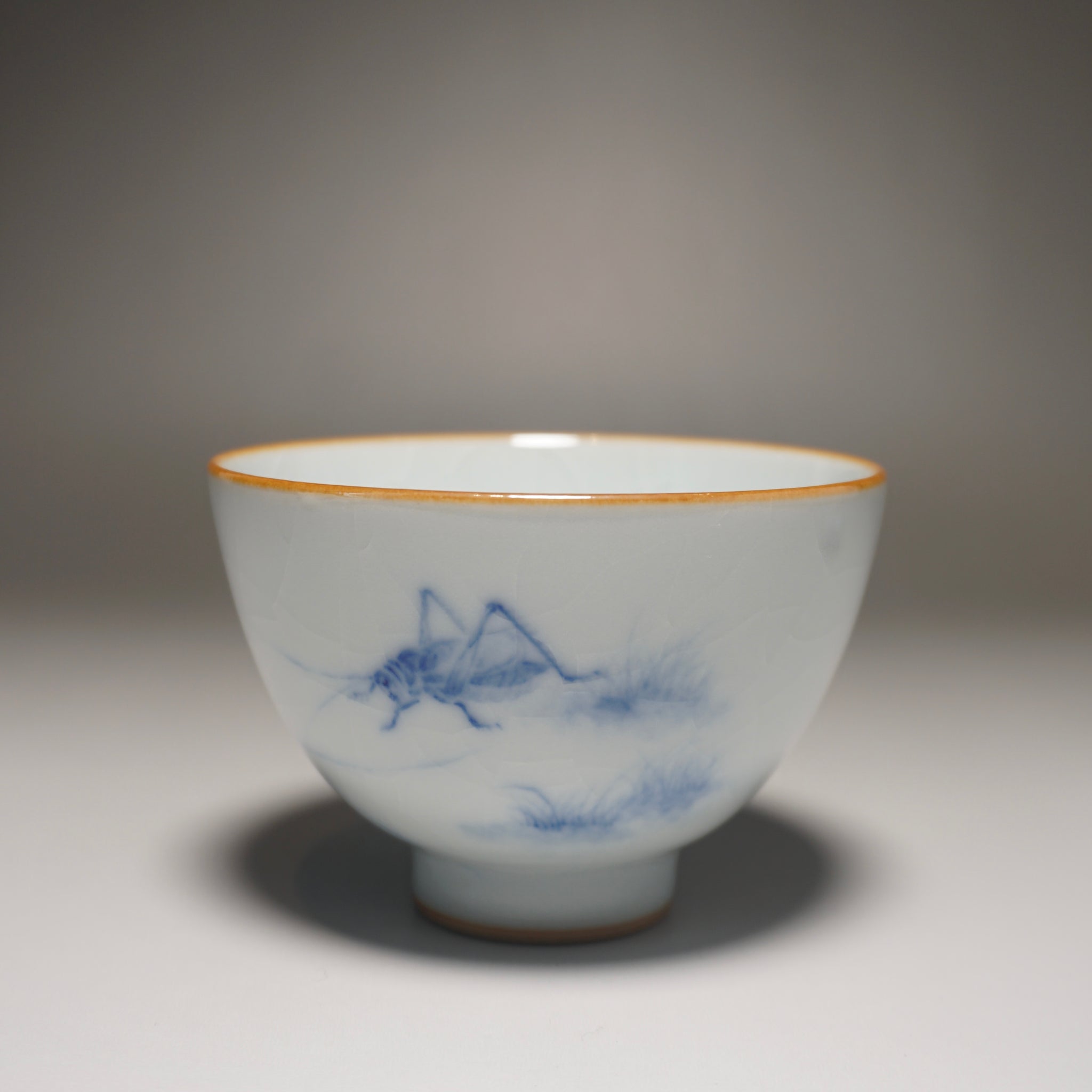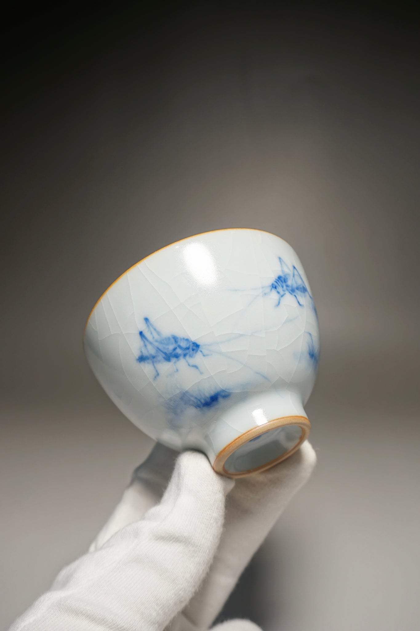120ml Qinghua Big Cricket Moon White Ruyao Teacup 月白汝窑蟋蟀杯