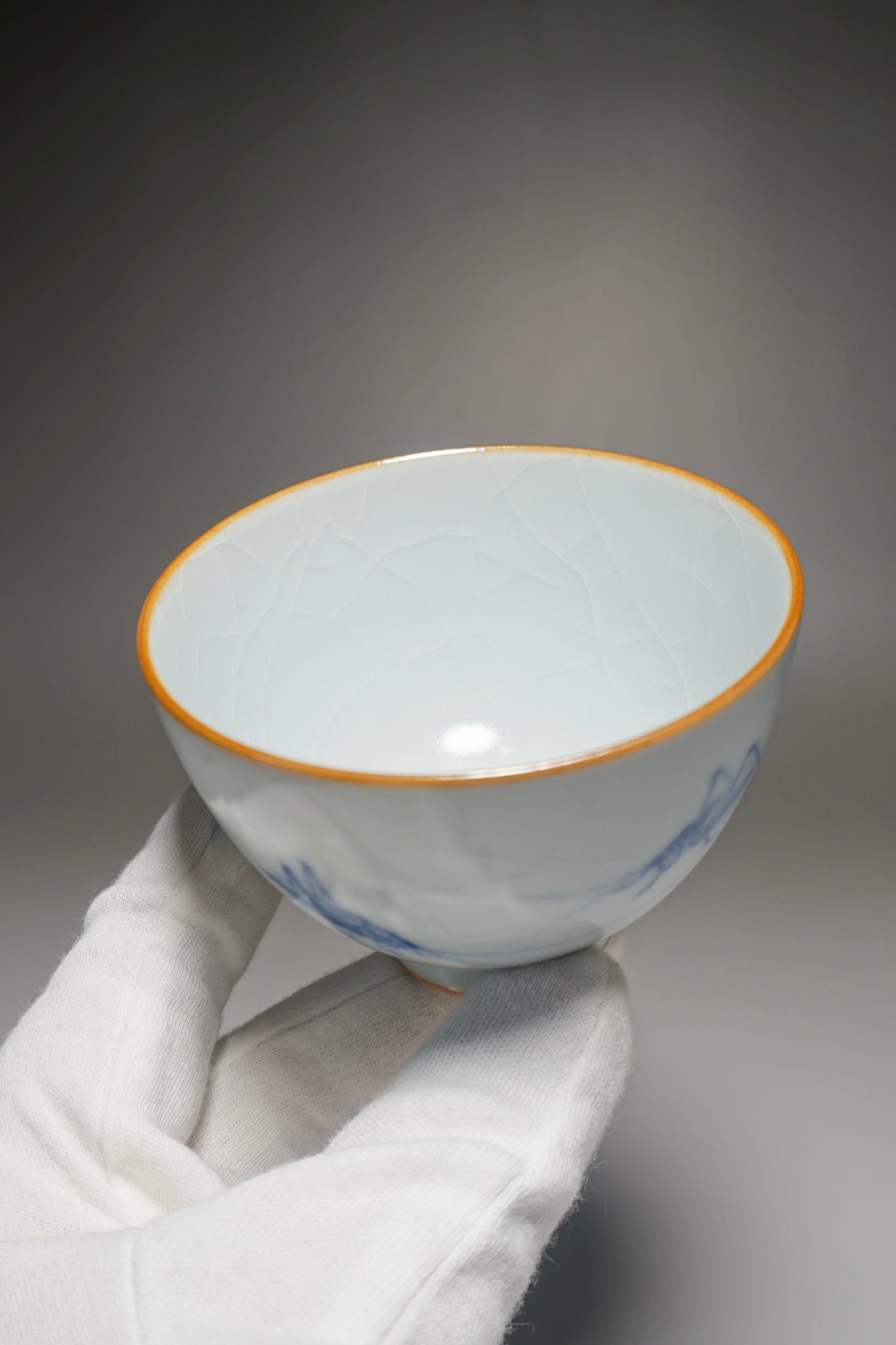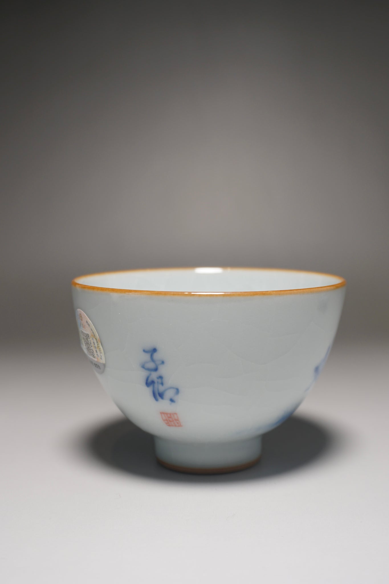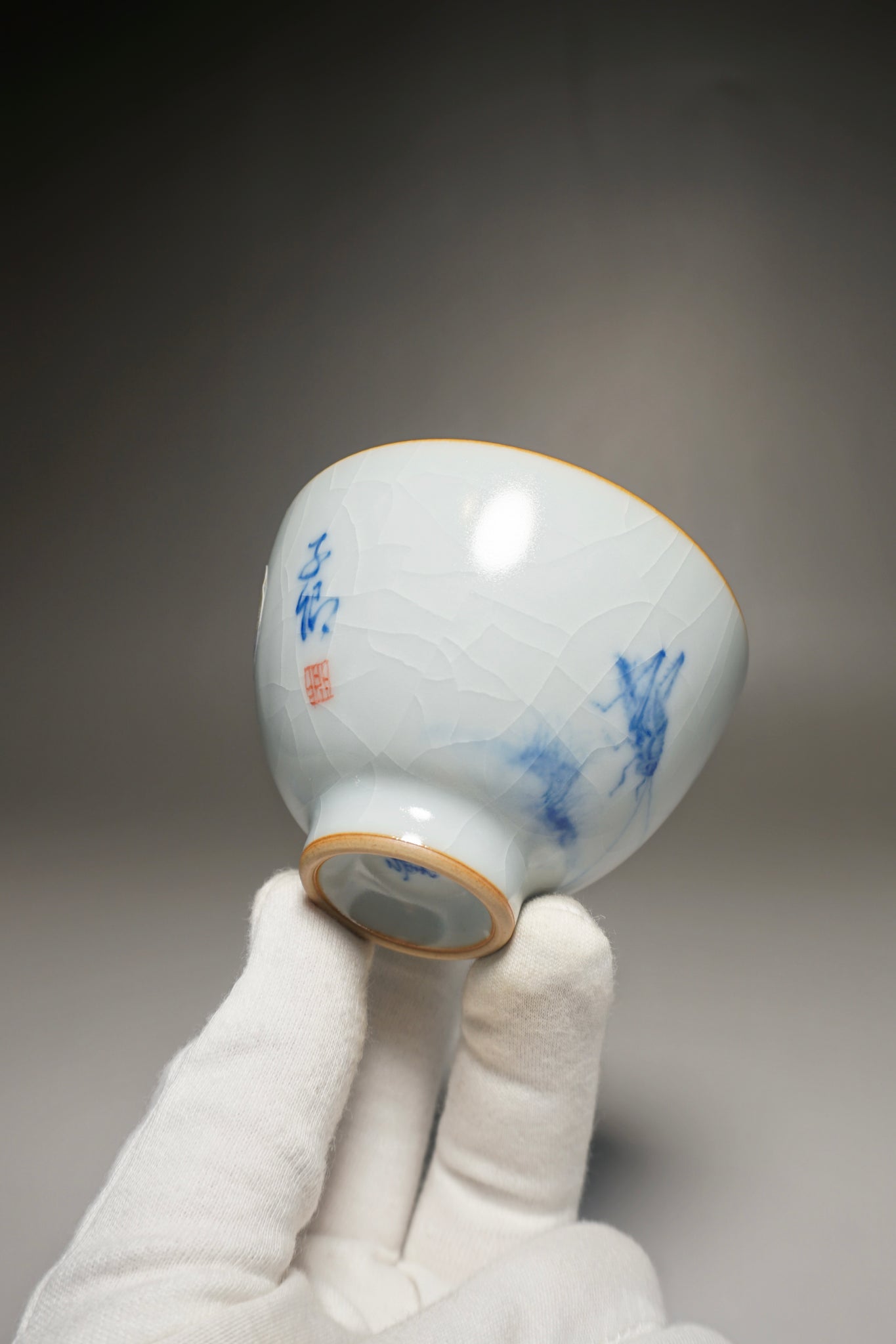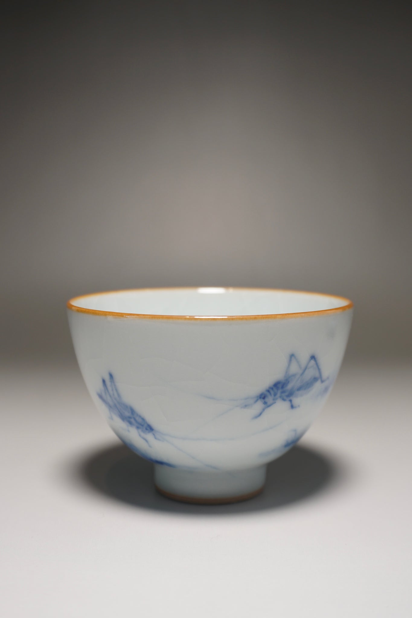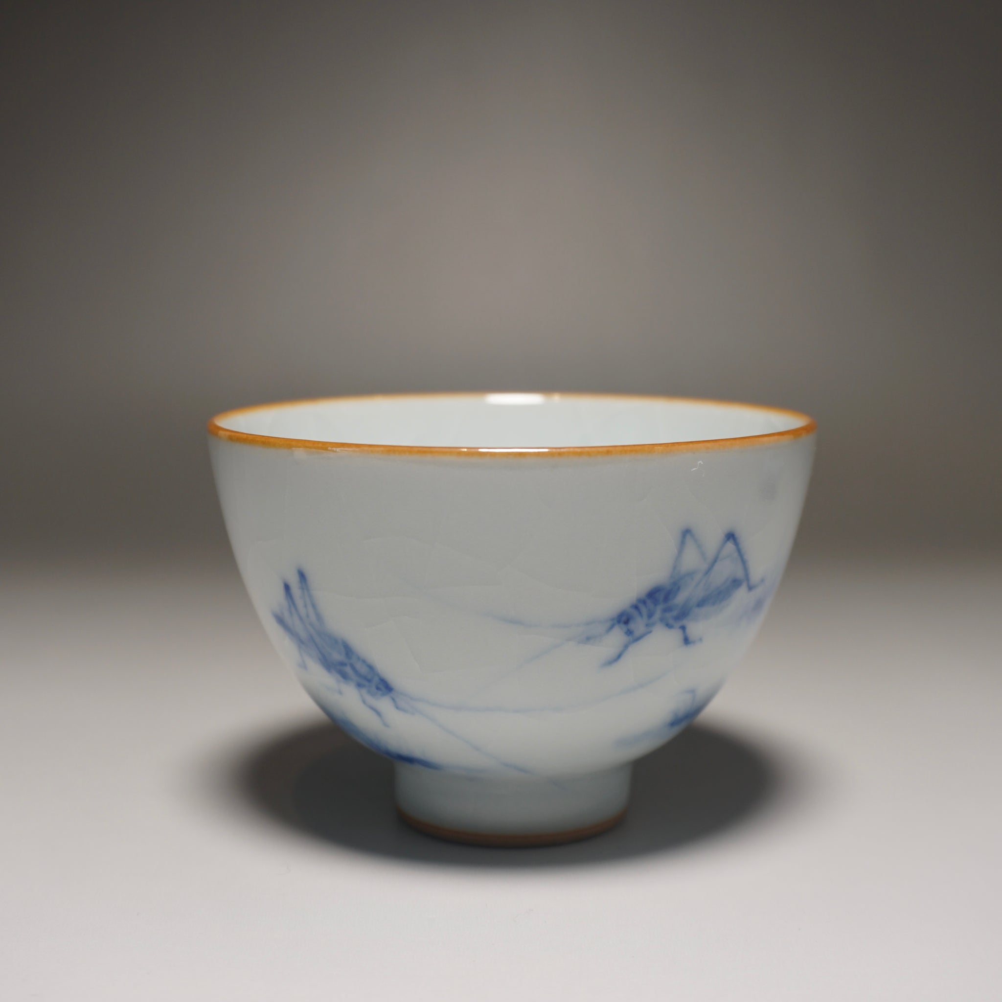 120ml Qinghua Big Cricket Moon White Ruyao Teacup 月白汝窑蟋蟀杯