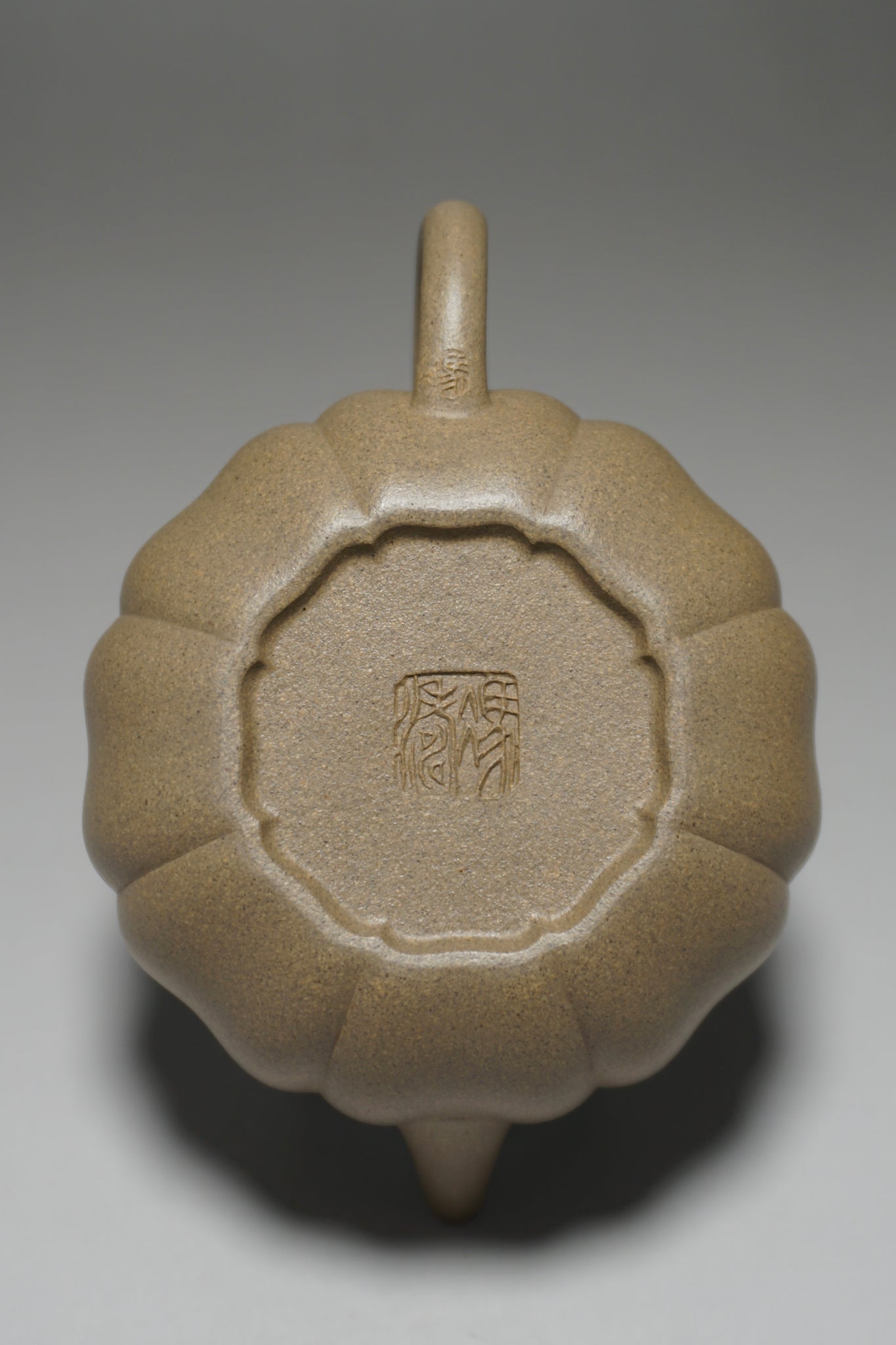 This teapot shape is an exceptionally difficult shape to make as a fully handmade piece. This shape is known as 筋纹器 Jingwen. Generally speaking, there are three basic symmetrical shapes for the body of an Yixing Teapot: Round, square and jingwen. The jingwen teapot is the most difficult of the three and the difficulty in maintaining the symmetry of the shape increases with the number of sides or lobes. The greater the number of lobes, the greater the difficulty in constructing the teapot.
