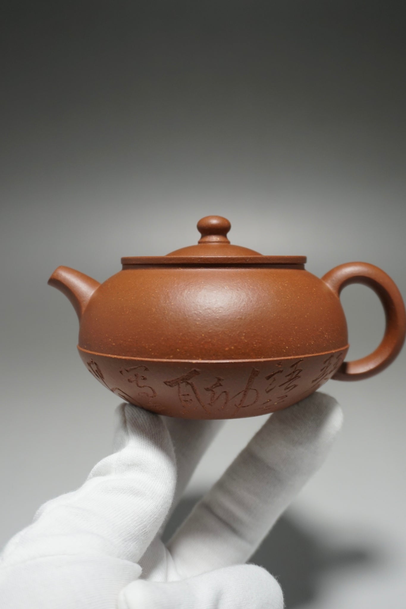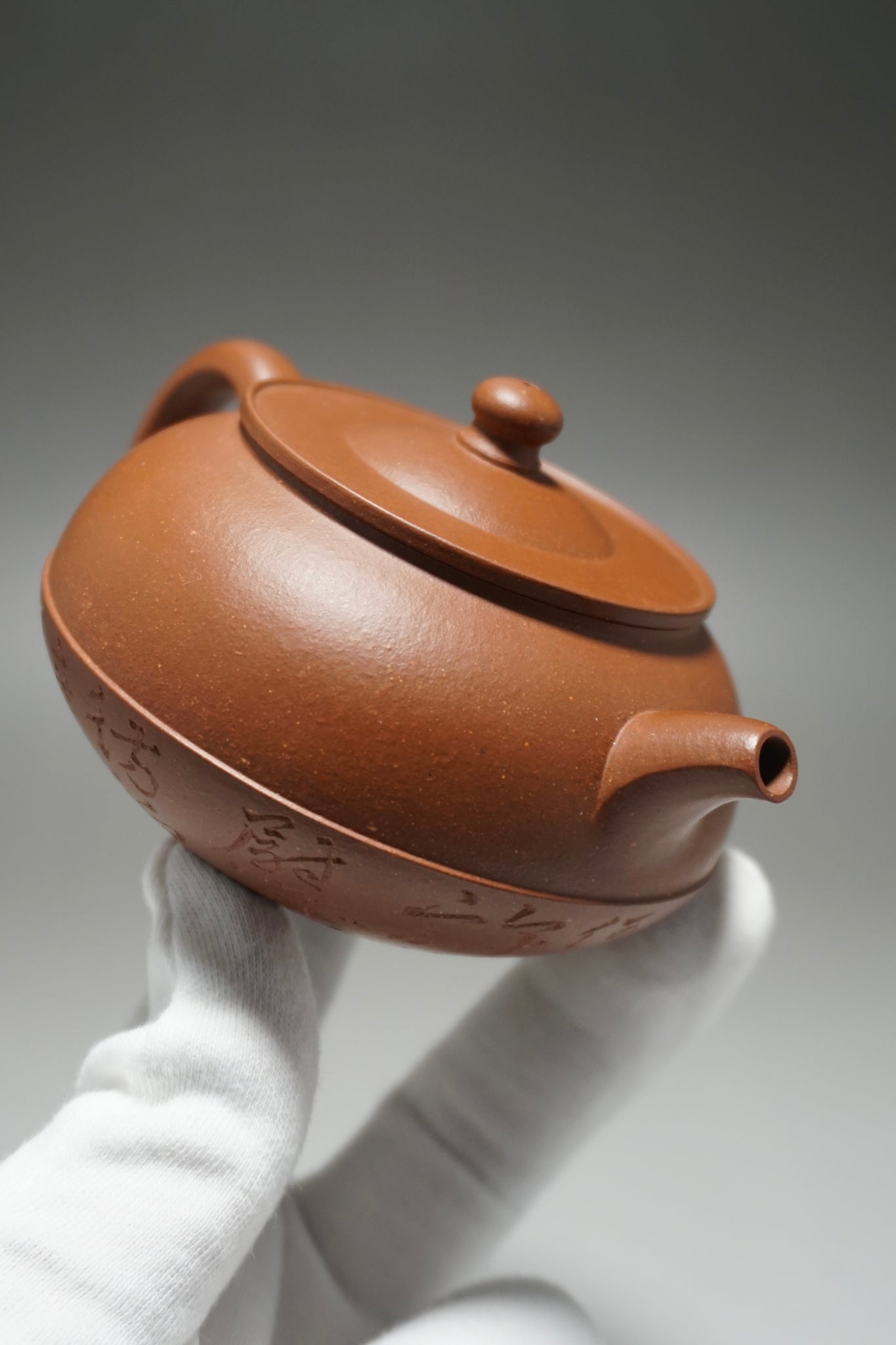 Photos are of the actual teapot. There is only one teapot available. This teapot was handmade by the artist 大生 Dasheng. The teapot features the hand carved inscription: