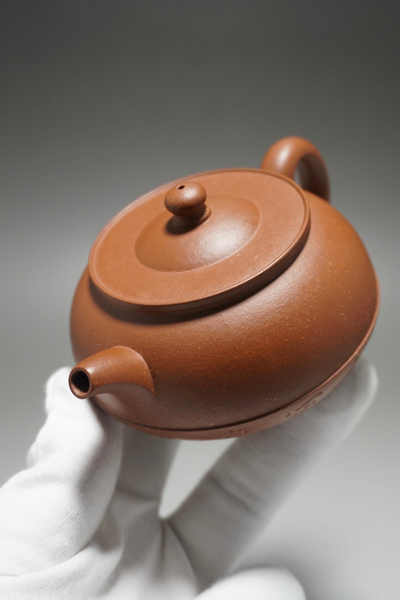 This pot is known as fully handmade as unlike most Yixing teapots that are half handmade the potter does not use a molding tool to shape the body, but instead shapes everything, including the body, by hand. Fully handmade teapots require more labor and more skill to construct, especially in the case of more complex shapes. Each one is entirely unique.