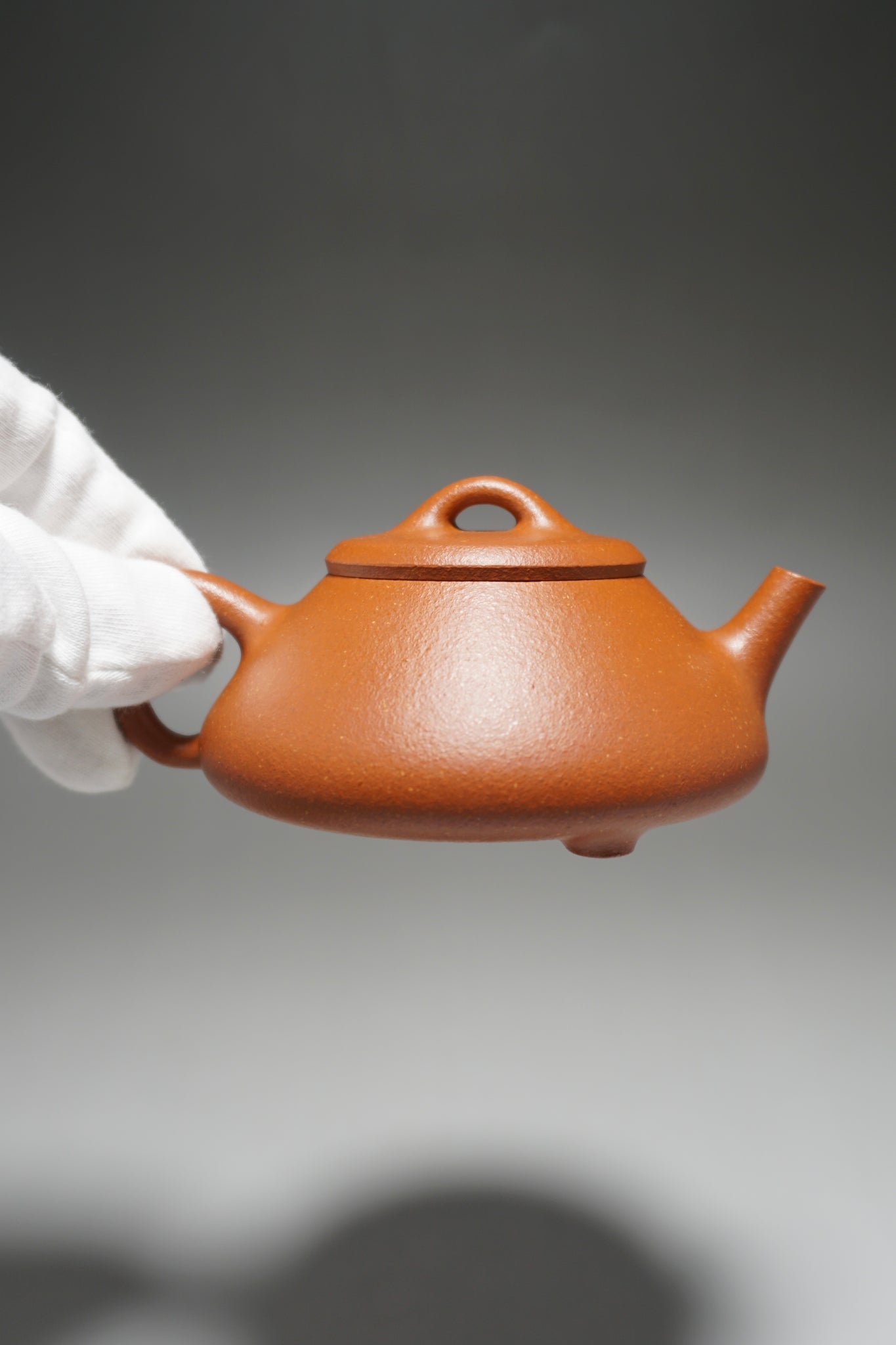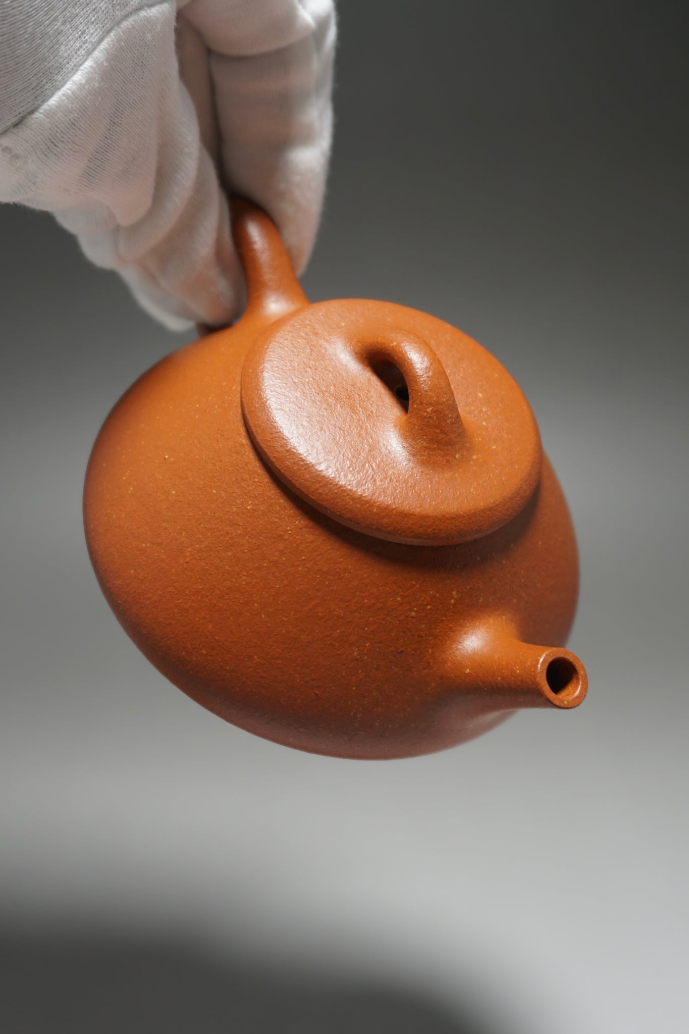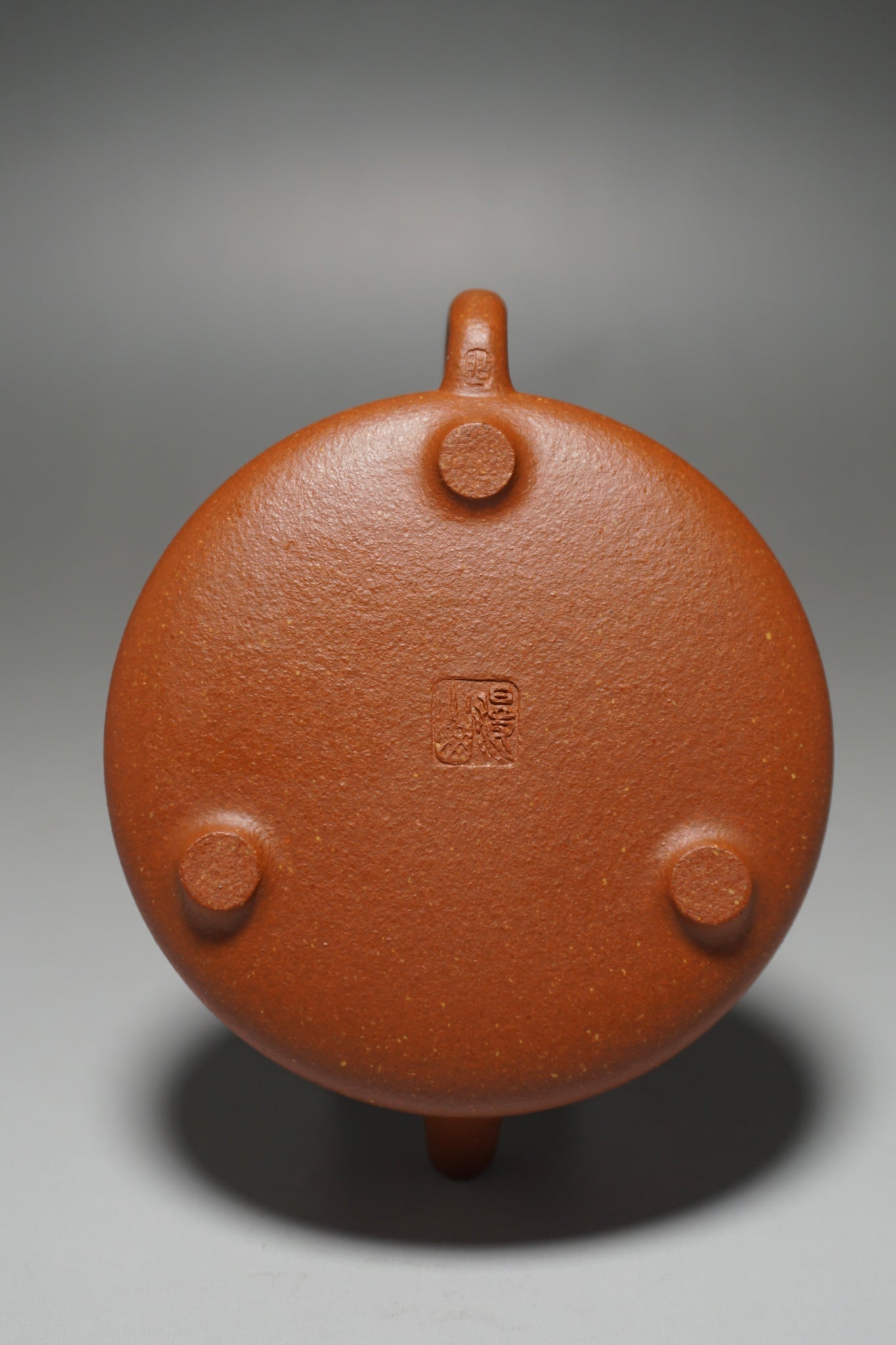 This pot is known as fully handmade as unlike most Yixing teapots that are half handmade the sculptor does not use a molding tool to shape the body, but instead shapes everything, including the body, by hand. Fully handmade teapots require more labor and more skill to construct, especially in the case of more complex shapes. Each one is entirely unique.