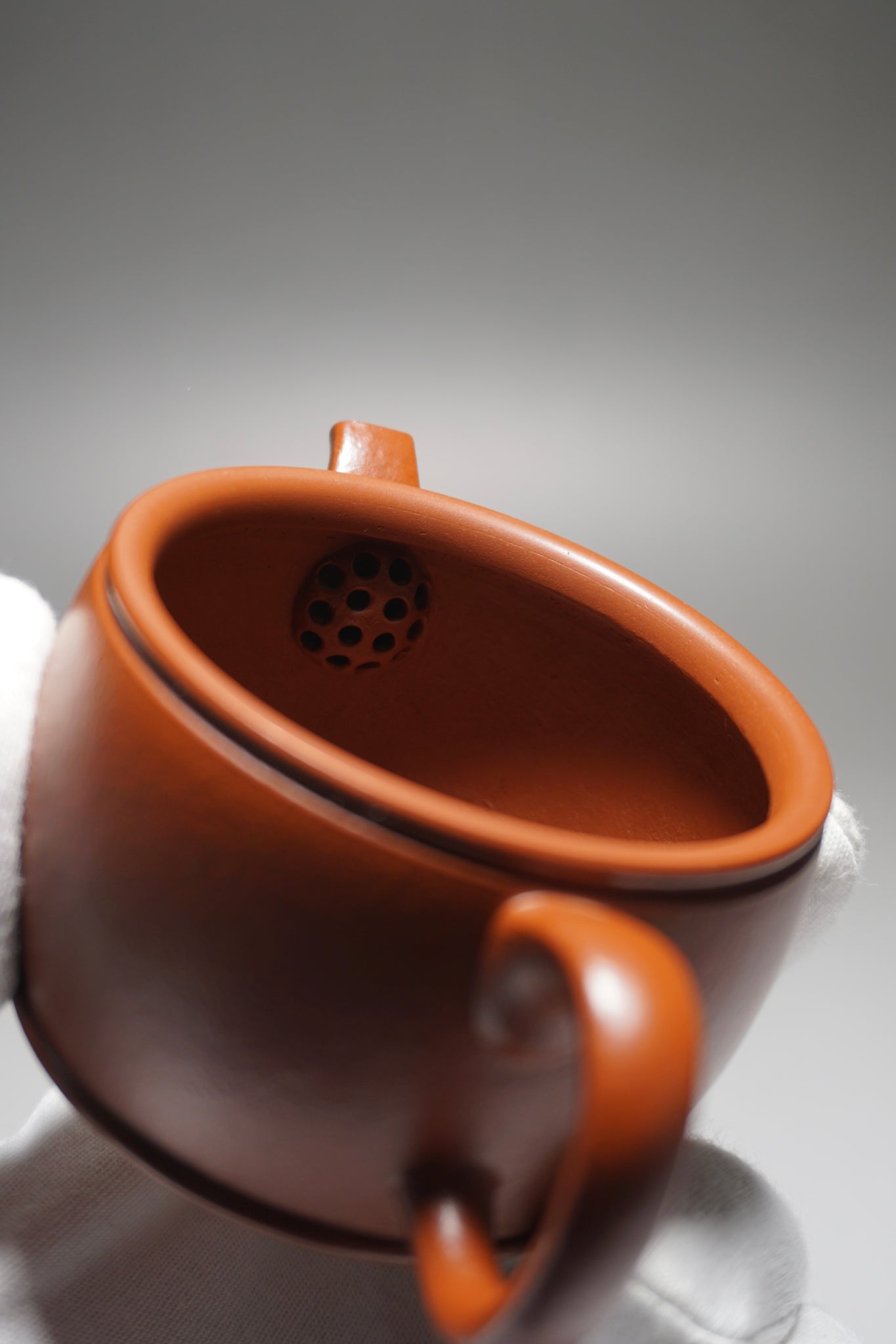 This is made from a red clay known as zhuni. As you can see from the photos, zhuni clay has a slight bumpy appearance. The clay will develop a shine from use. Zhuni clay is prized for its ability to preserve the full spectrum of flavour and concentrate the fragrance of a tea. It is also the most difficult clay to fire as it is more likely to break during the process.