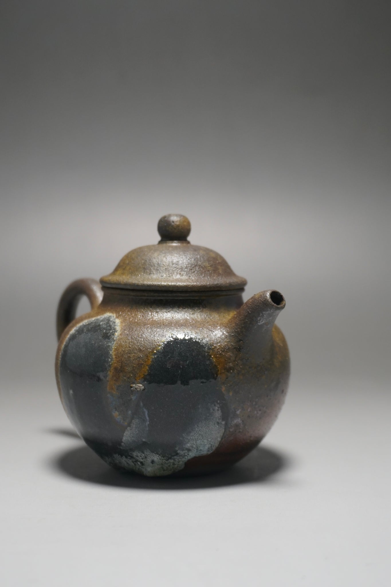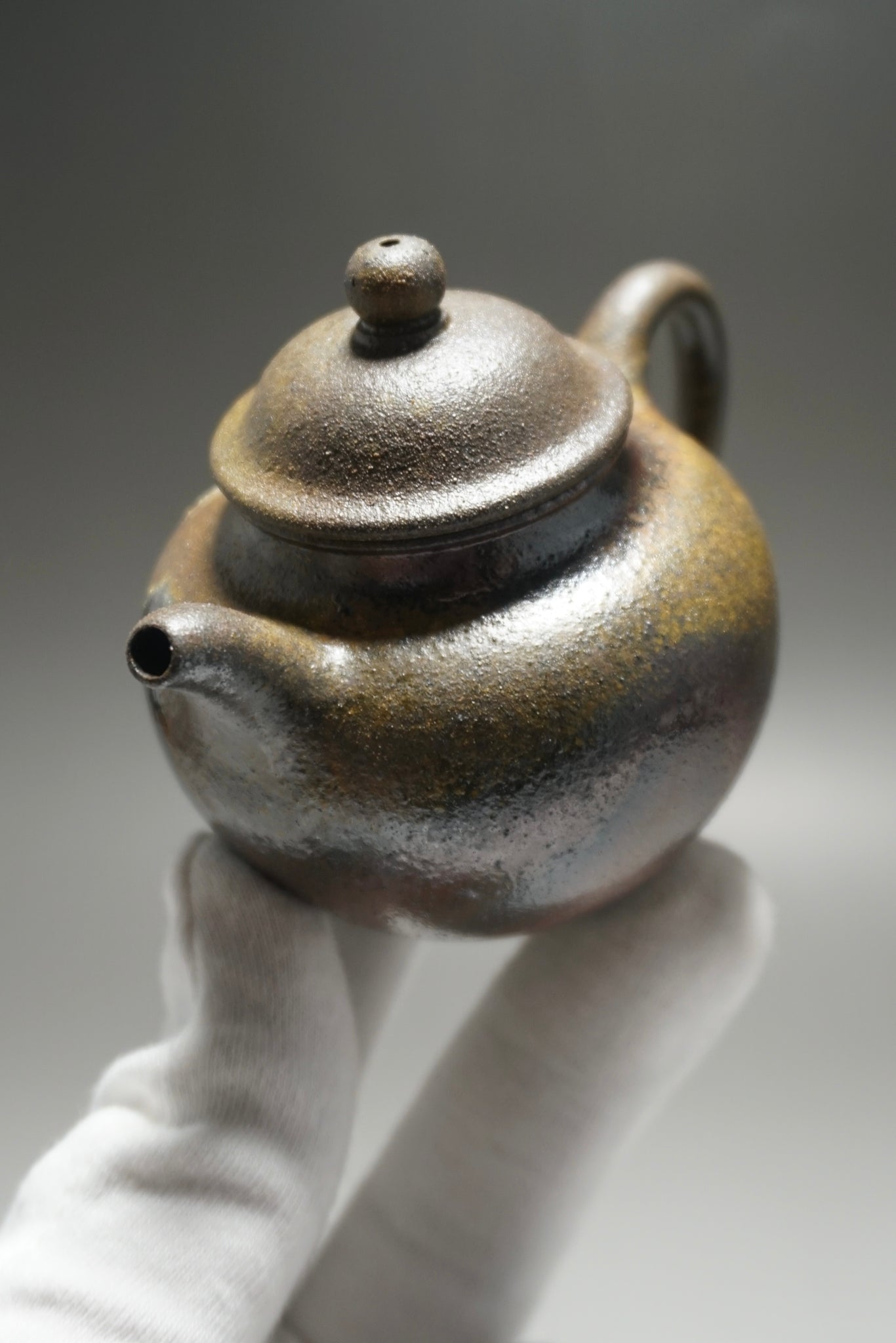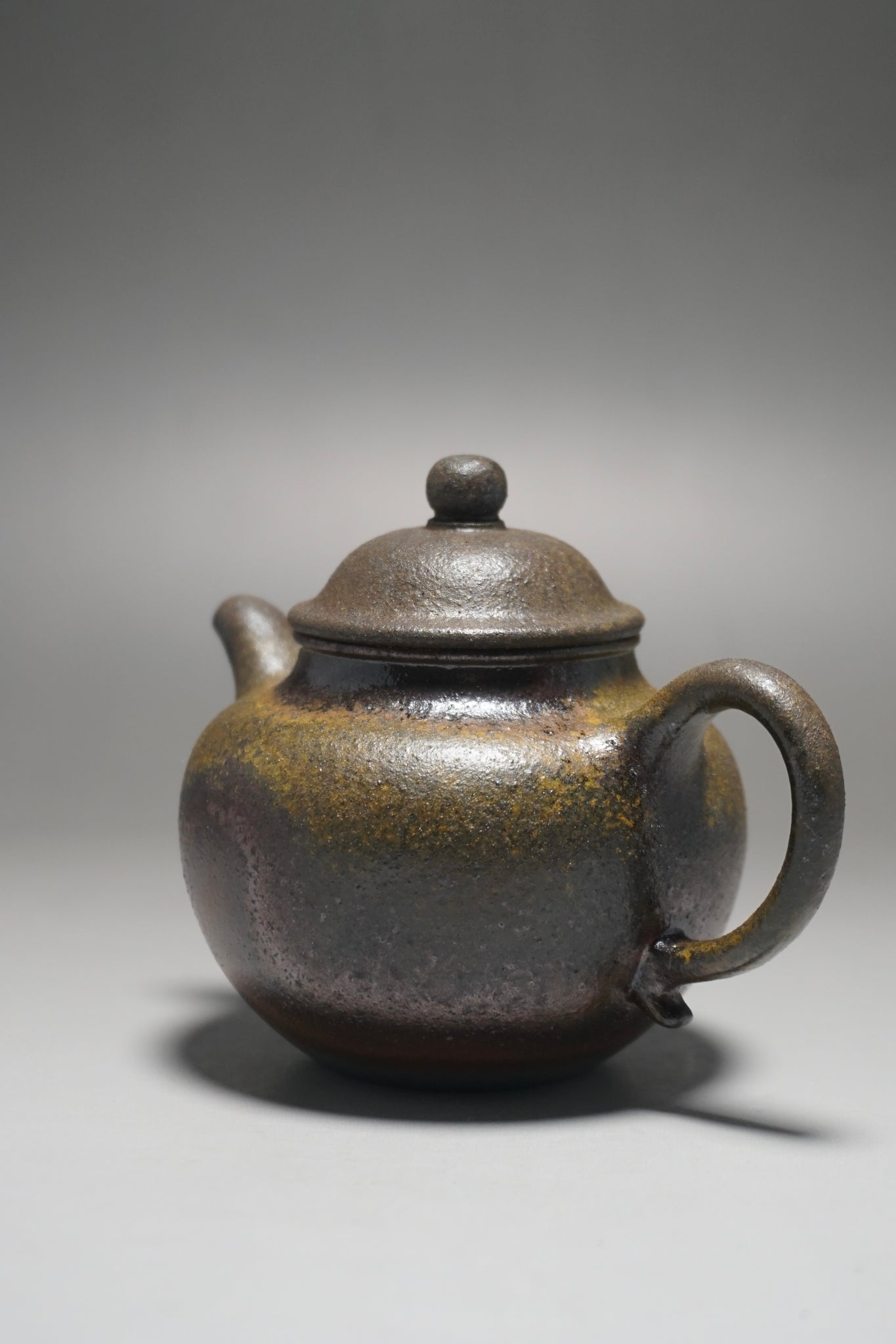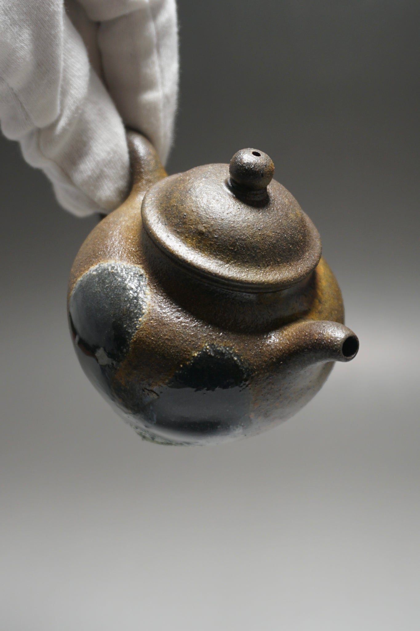This teapot was fired in a traditional wood kiln in Yixing. The pattern, color and finish are the result of being fired uncovered in a wood kiln for 3 days and 4 nights. The pine wood ash falls on the surface of the teapot forming a natural glaze that is sometimes glossy black, red, brown, yellow, green or any combination of these colors. Wood Fired Yixing Teapots each have their own special appearance, no two are the same. Photos are of actual teapot.