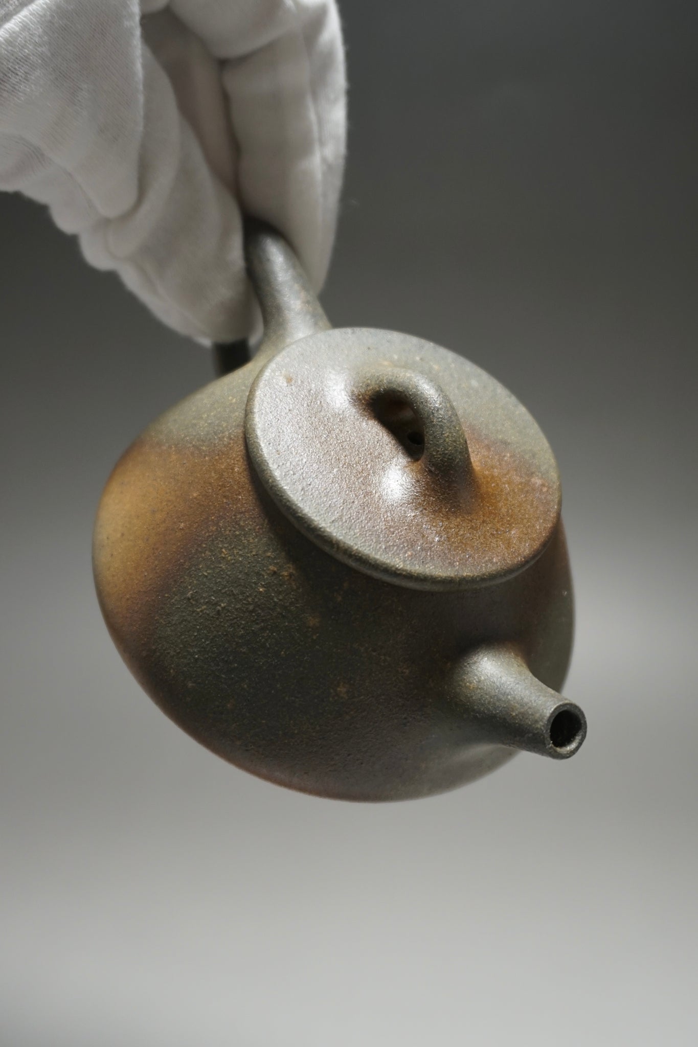 This teapot was fired in a traditional wood kiln in Yixing. The pattern, color and finish are the result of being fired uncovered in a wood kiln for 3 days and 4 nights. The pine wood ash falls on the surface of the teapot forming a natural glaze that is sometimes glossy black, red, brown, yellow, green or any combination of these colors. Wood Fired Yixing Teapots each have their own special appearance, no two are the same. Photos are of actual teapot.