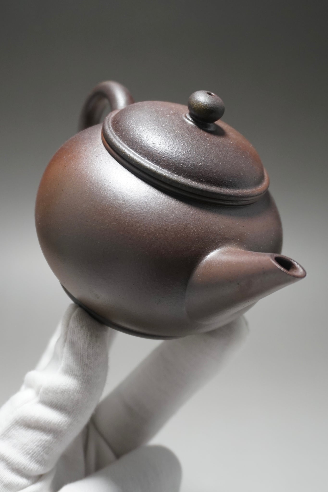 This teapot was fired in a traditional wood kiln in Yixing. The pattern, color and finish are the result of being fired uncovered in a wood kiln for 3 days and 4 nights. The pine wood ash falls on the surface of the teapot forming a natural glaze that is sometimes glossy black, red, brown, yellow, green or any combination of these colors. Wood Fired Yixing Teapots each have their own special appearance, no two are the same. Photos are of actual teapot.