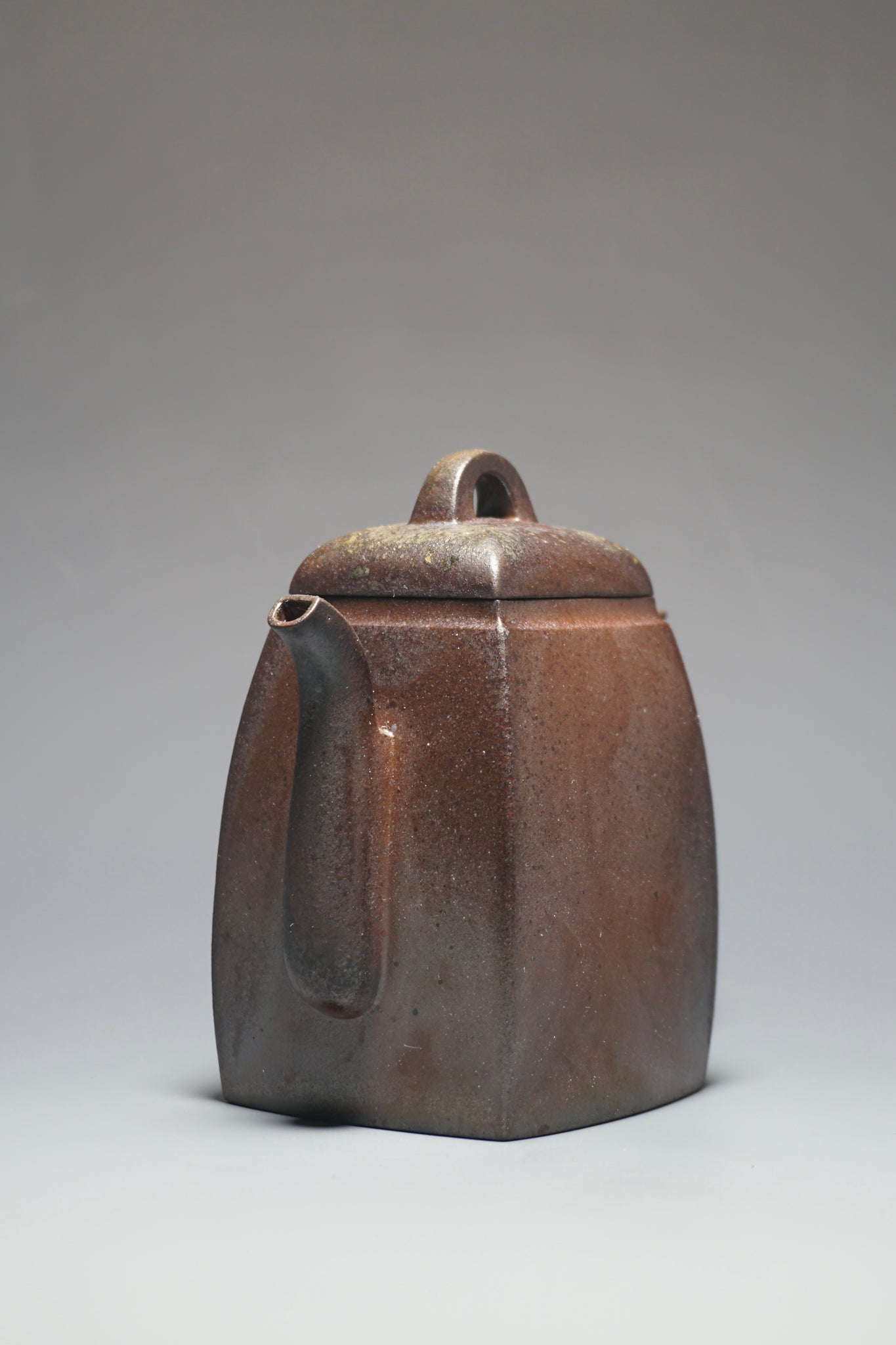 This teapot was fired in a traditional wood kiln in Yixing. The pattern, color and finish are the result of being fired uncovered in a wood kiln for 3 days and 4 nights. The pine wood ash falls on the surface of the teapot forming a natural glaze that is sometimes glossy black, red, brown, yellow, green or any combination of these colors. Wood Fired Yixing Teapots each have their own special appearance, no two are the same. Photos are of actual teapot.