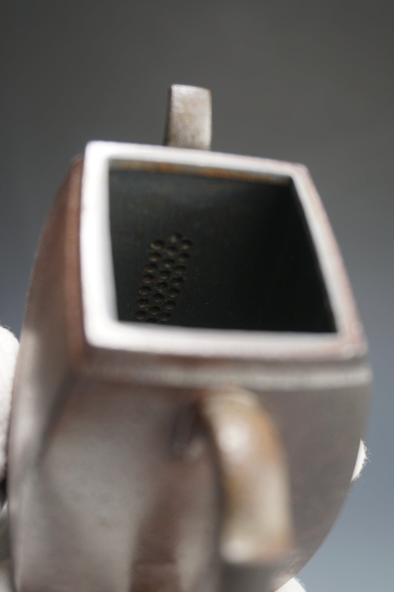 The process of building the square shape requires a great deal of time and skill to produce a symmetrical teapot. Although qualifying as half-handmade as it uses a molding tool to help shape the walls, the process requires a great deal of skill and two full days of work to complete.