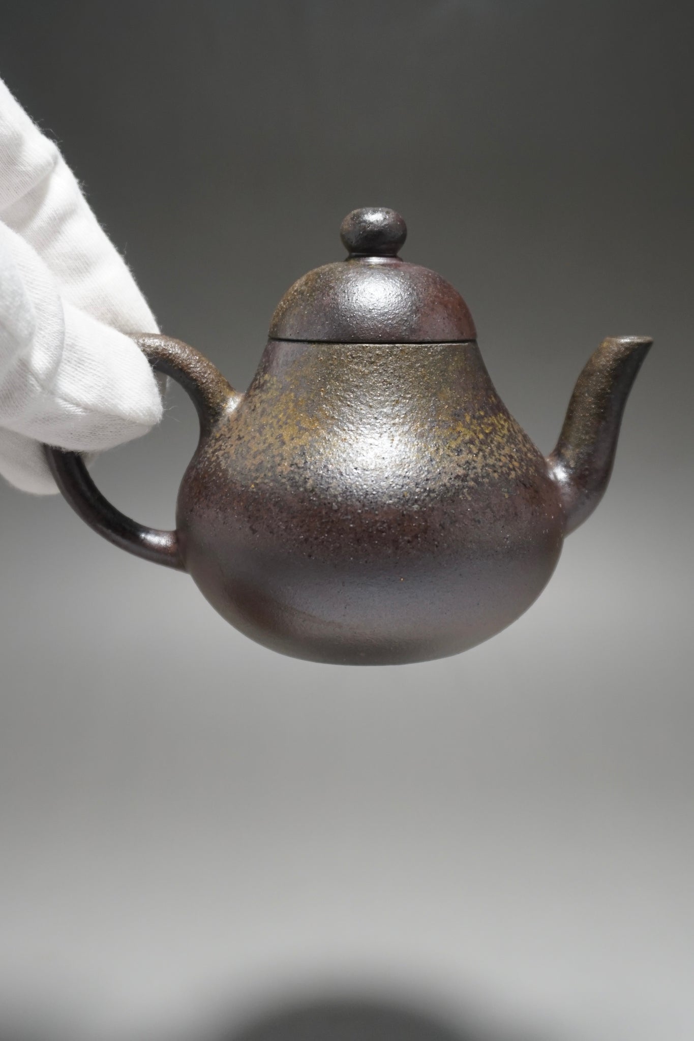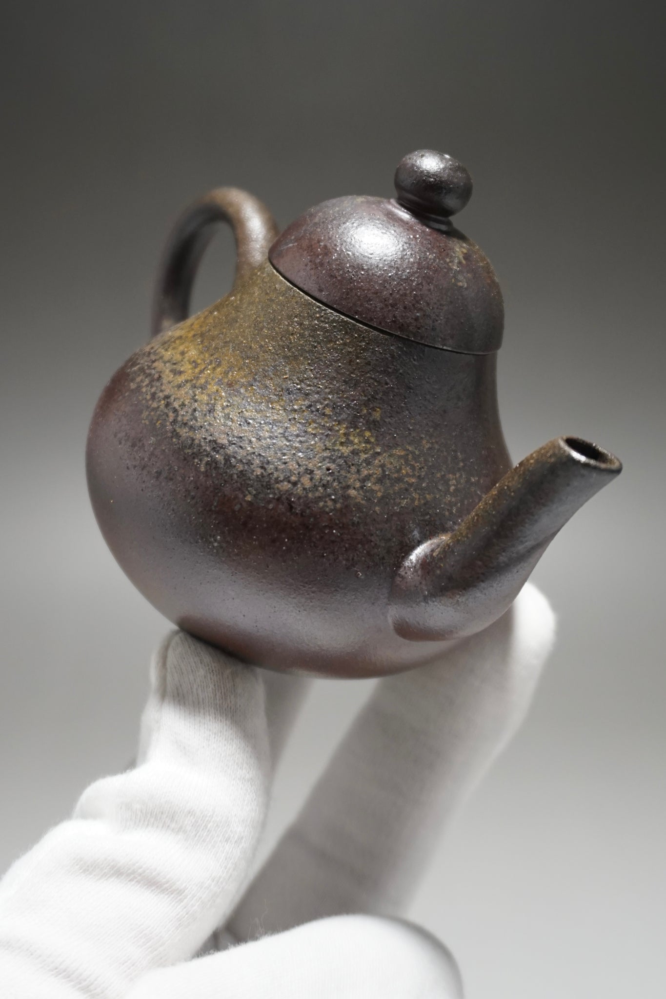 This teapot was fired in a traditional wood kiln in Yixing. The pattern, color and finish are the result of being fired uncovered in a wood kiln for 3 days and 4 nights. The pine wood ash falls on the surface of the teapot forming a natural glaze that is sometimes glossy black, red, brown, yellow, green or any combination of these colors. Wood Fired Yixing Teapots each have their own special appearance, no two are the same. Photos are of actual teapot.