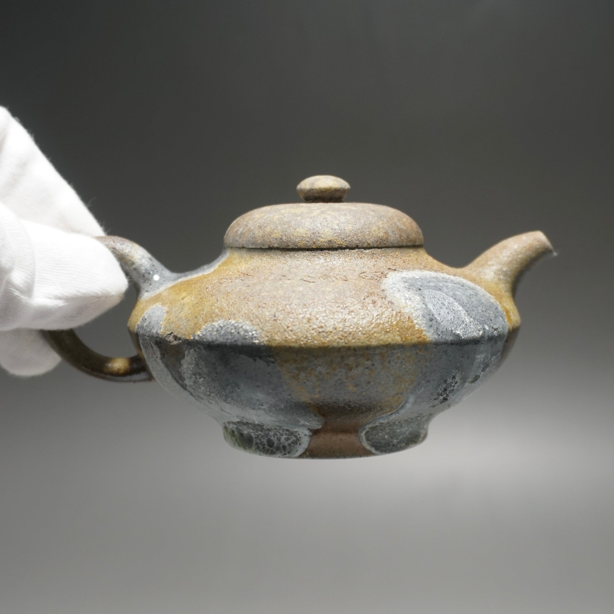 This teapot was fired in a traditional wood kiln in Yixing. The pattern, color and finish are the result of being fired uncovered in a wood kiln for 3 days and 4 nights. The pine wood ash falls on the surface of the teapot forming a natural glaze that is sometimes glossy black, red, brown, yellow, green or any combination of these colors. Wood Fired Yixing Teapots each have their own special appearance, no two are the same. Photos are of actual teapot.